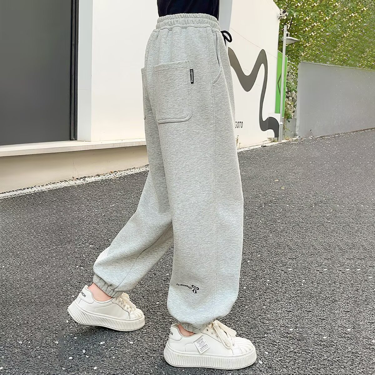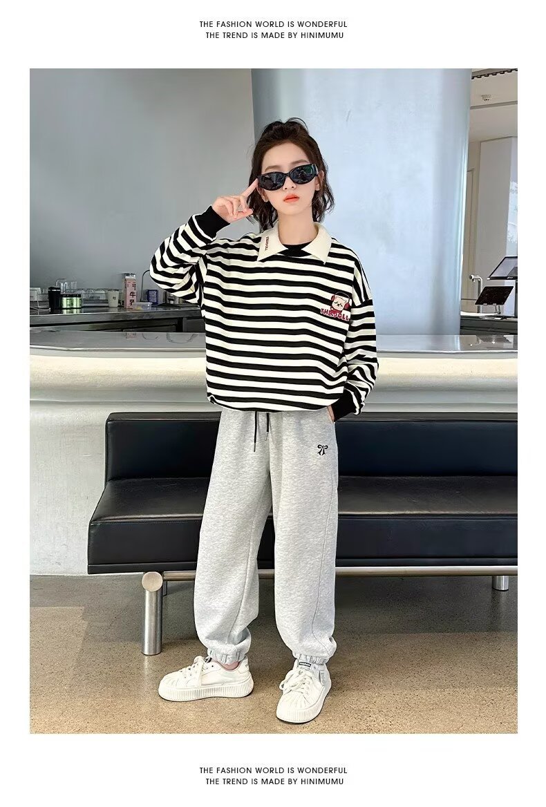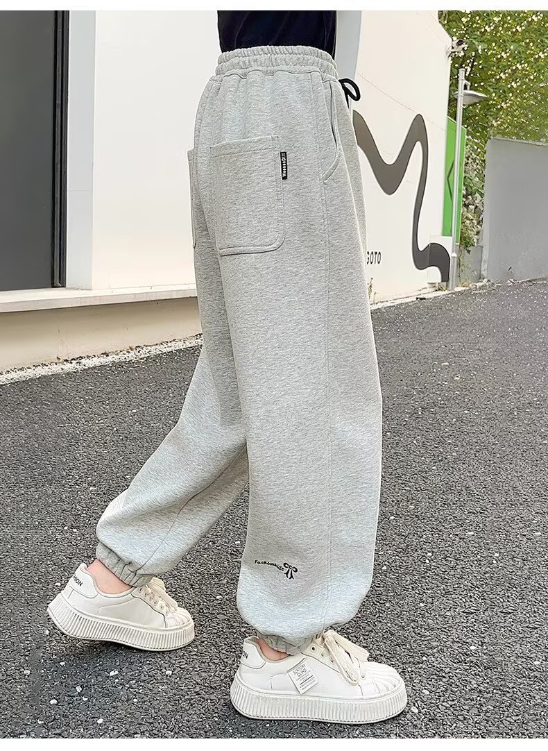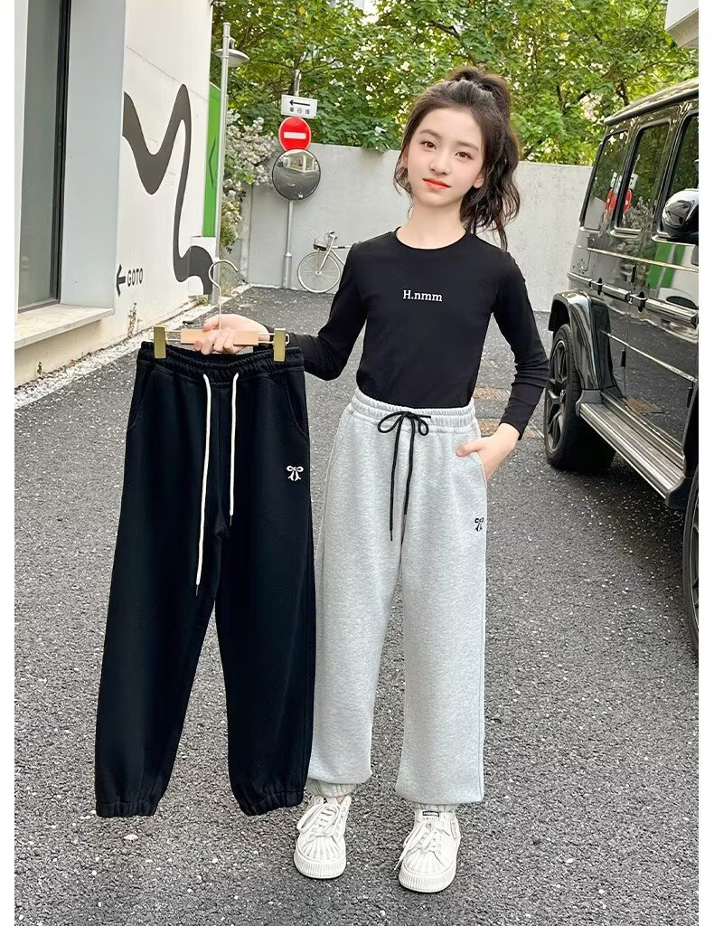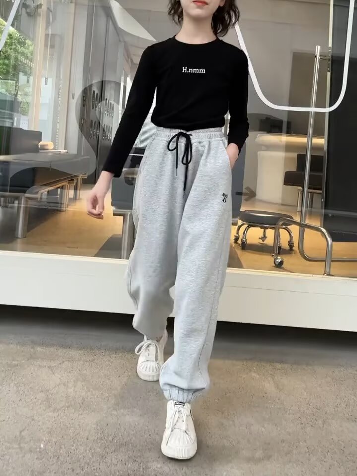 소녀 바지 봄과 가을 새로운 아동복 가을 어린이 스웨트 팬츠 서양식 여성의 큰 어린이 가을 착용 스포츠 바지 그레이스토어 가기