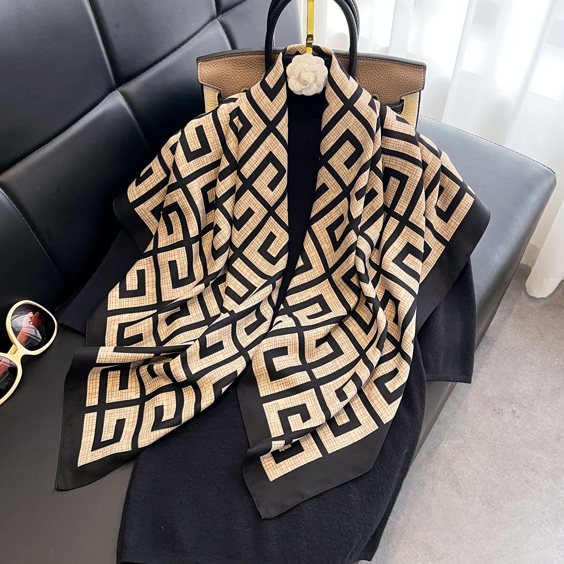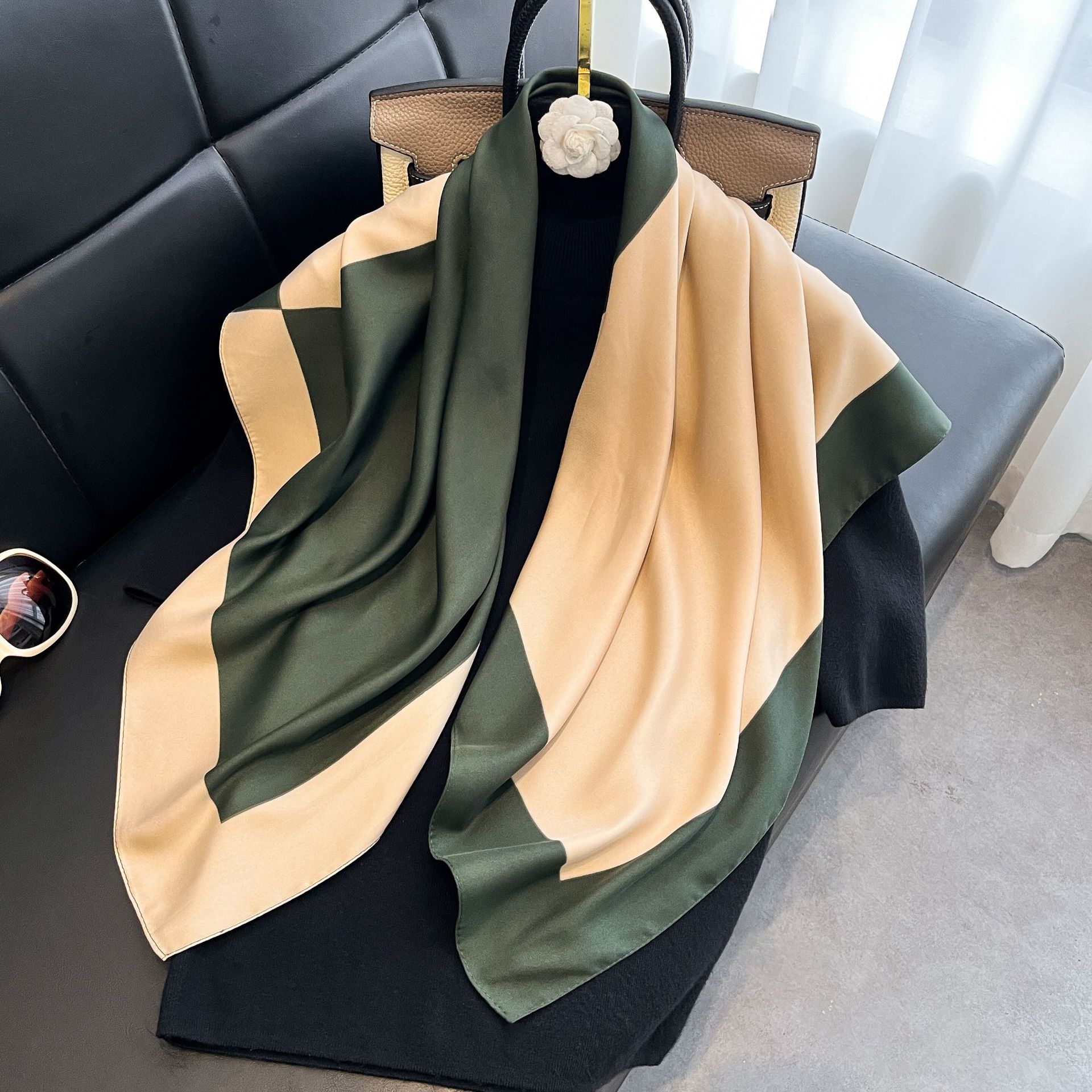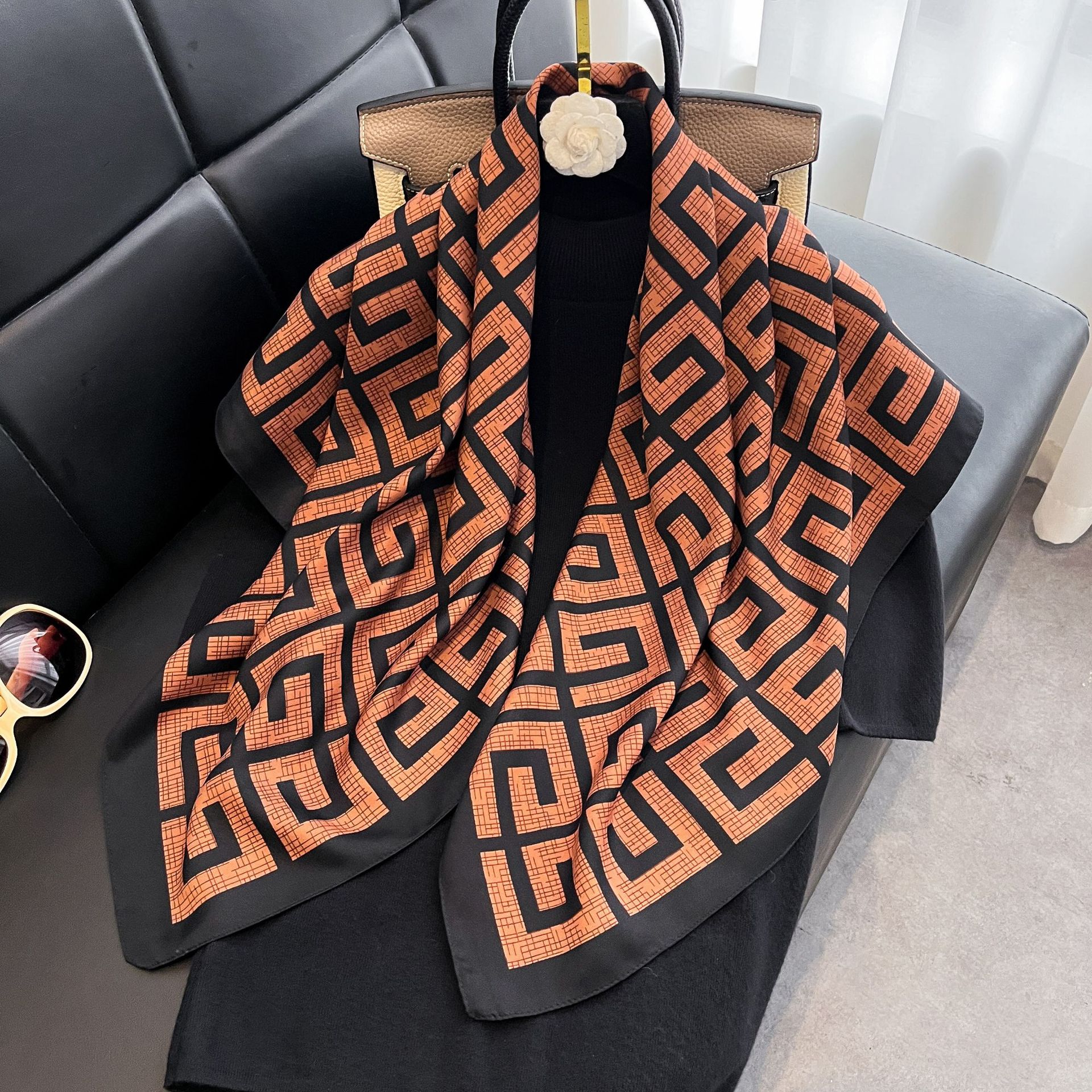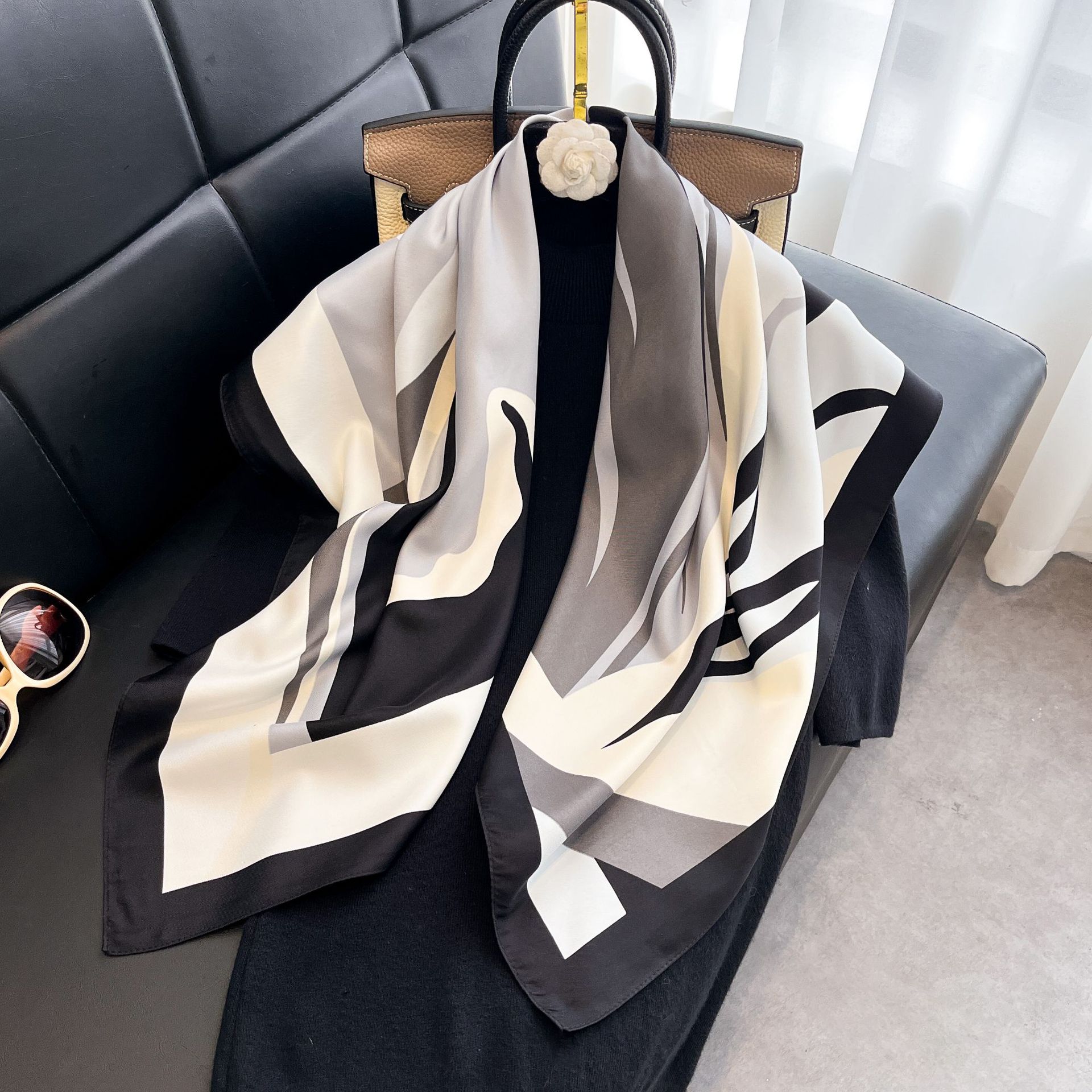 스타 같은 스타일 새로운 스타일 스퀘어 스카프 우아한 기하학적 색 매칭 패턴 모방 실크 대형 스퀘어 스카프 고급 한국 여성 실크 실크 스카프