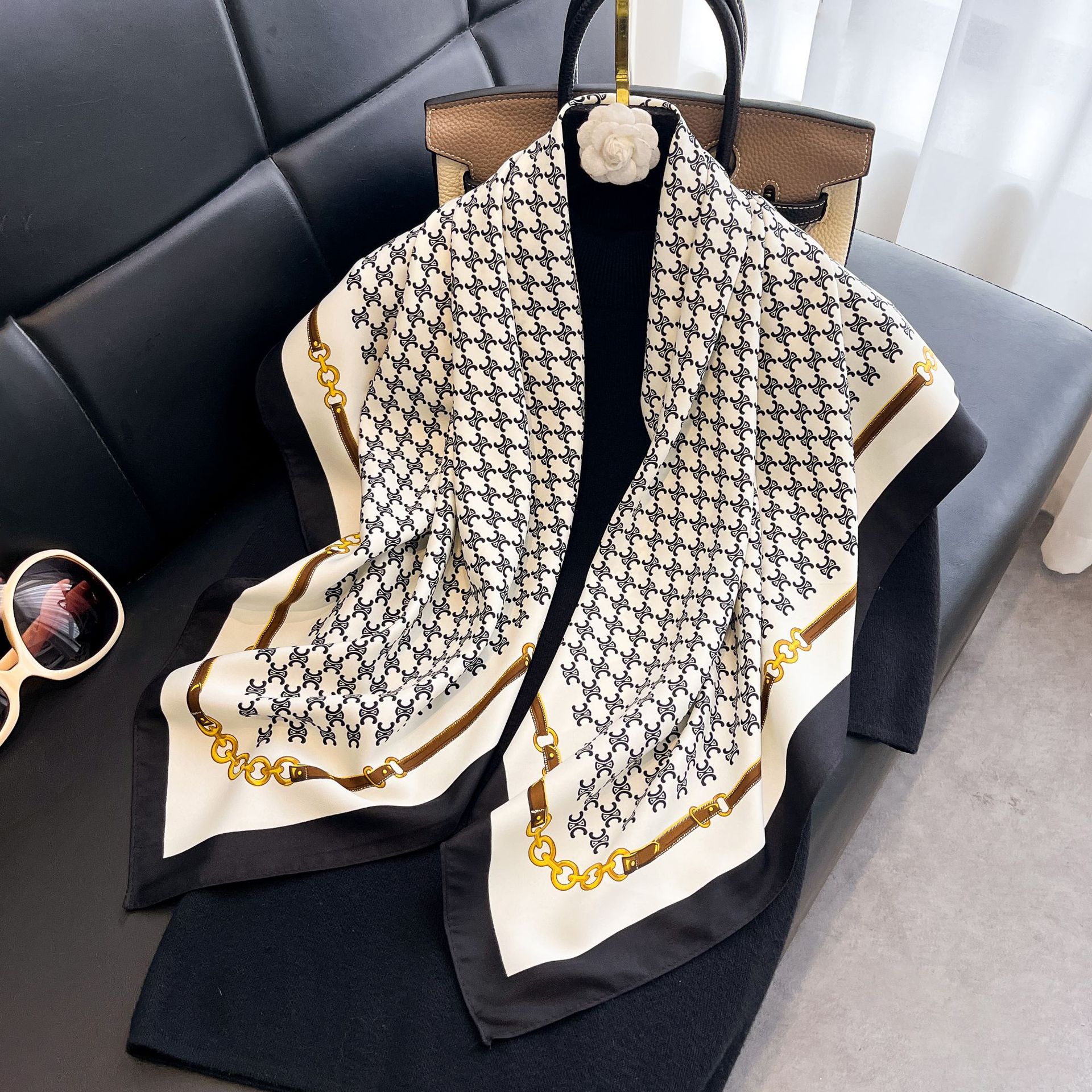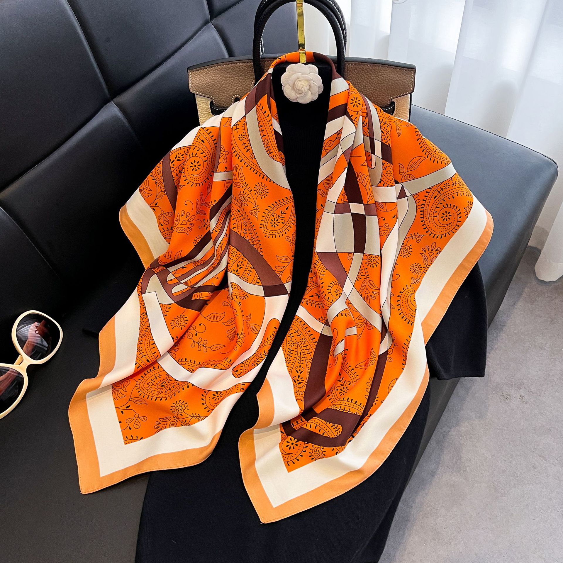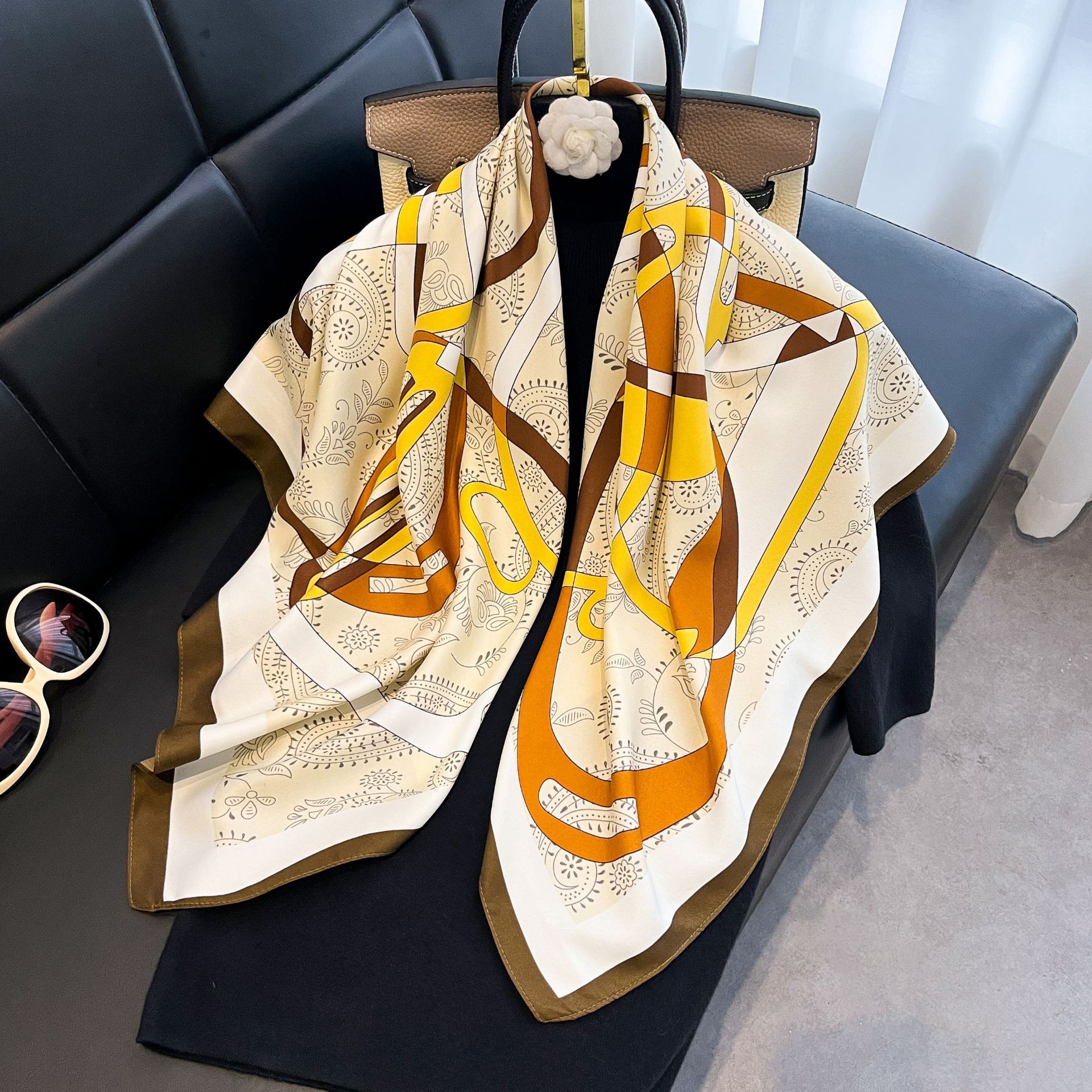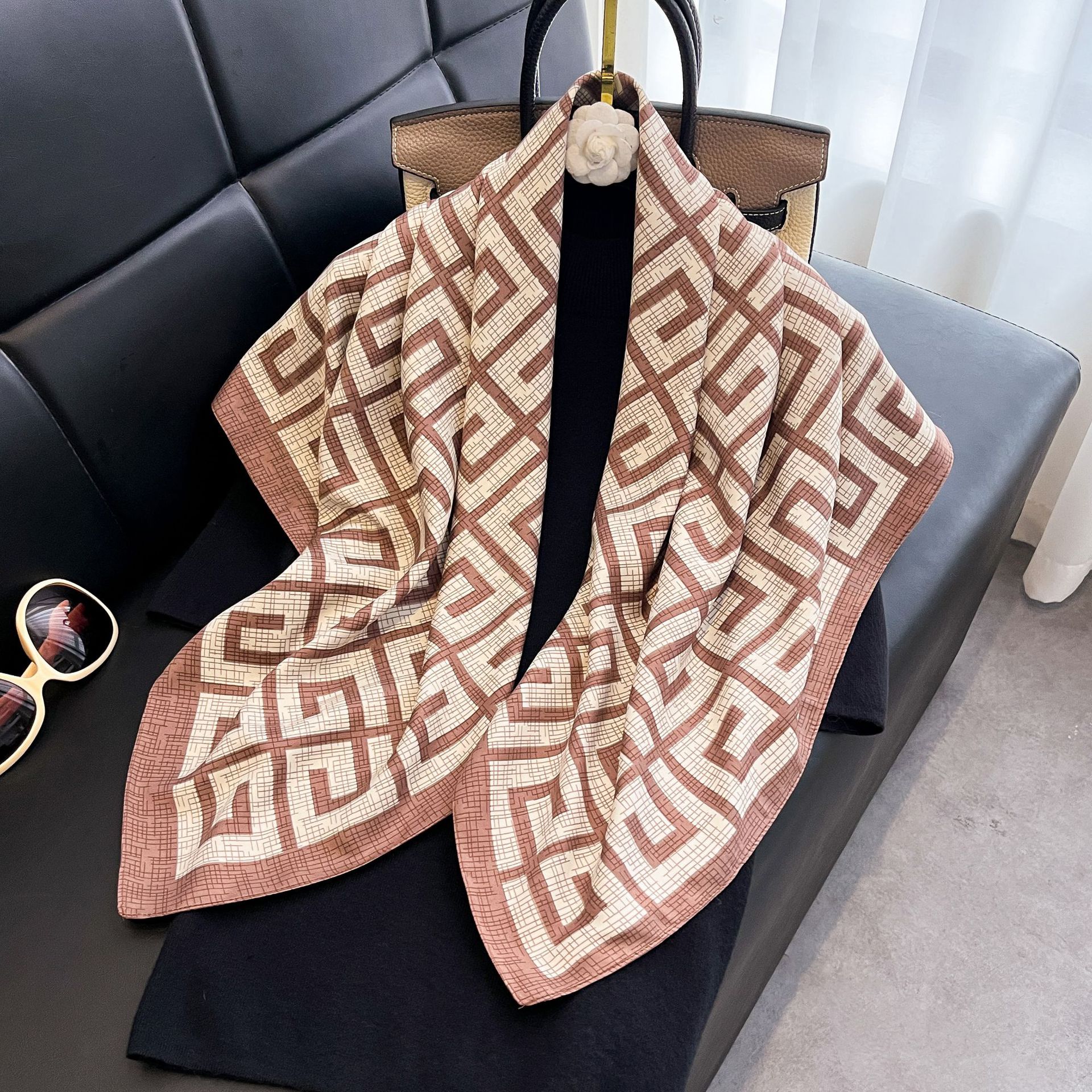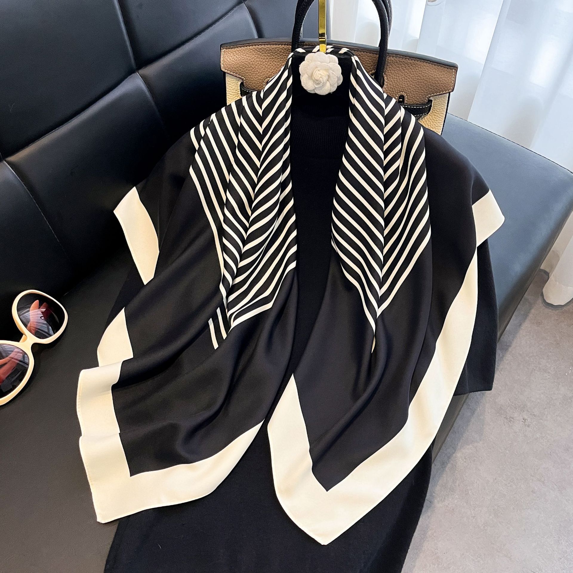 스타 같은 스타일 새로운 스타일 스퀘어 스카프 우아한 기하학적 색 매칭 패턴 모방 실크 대형 스퀘어 스카프 고급 한국 여성 실크 실크 스카프
