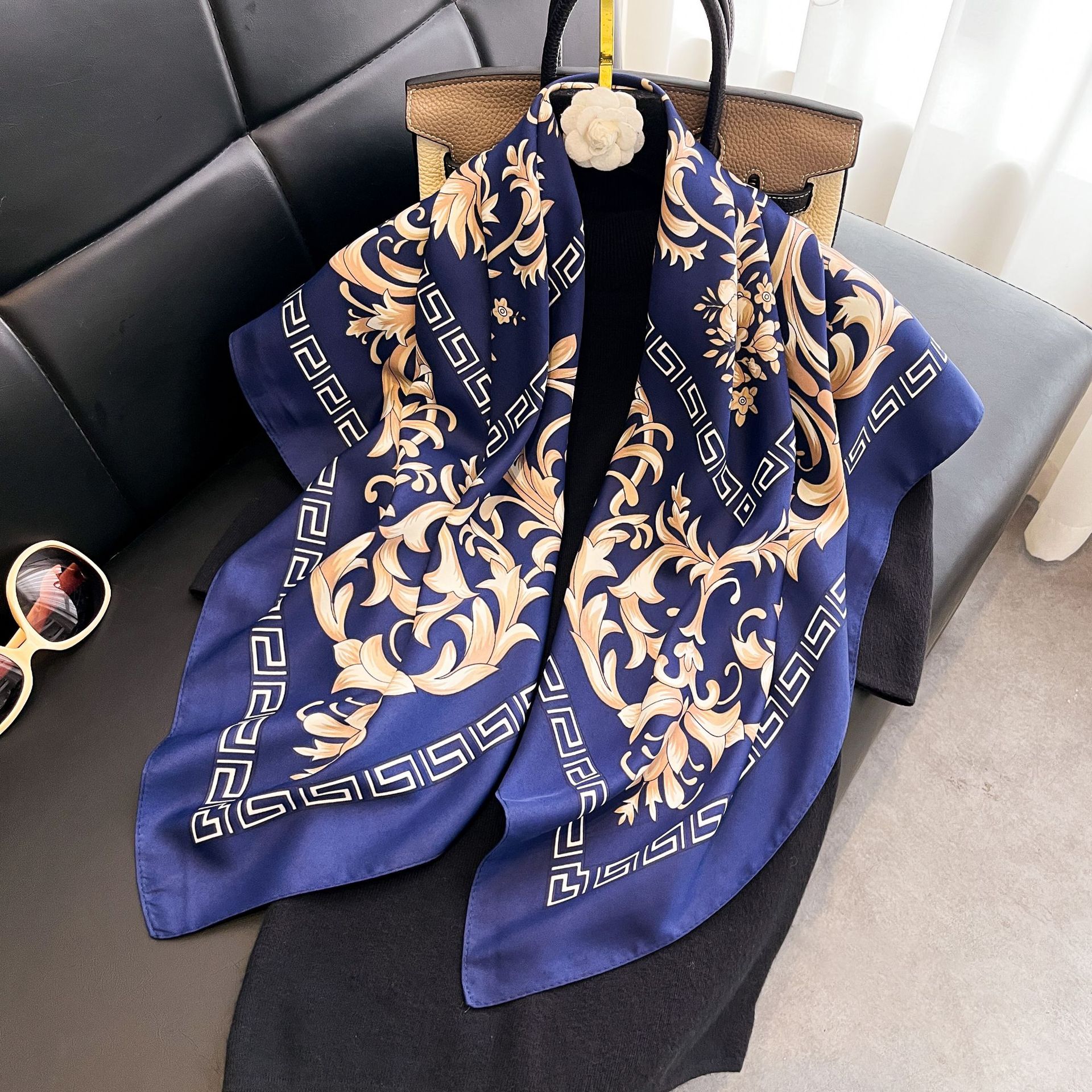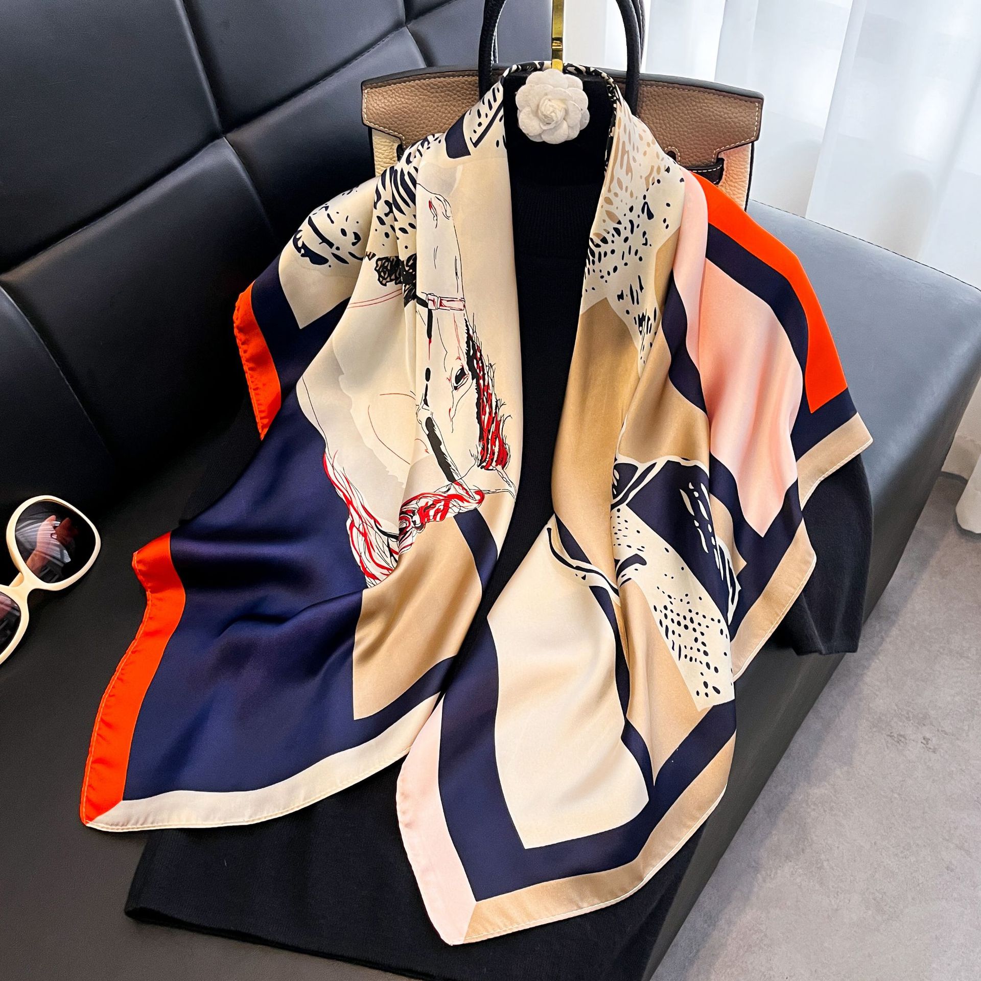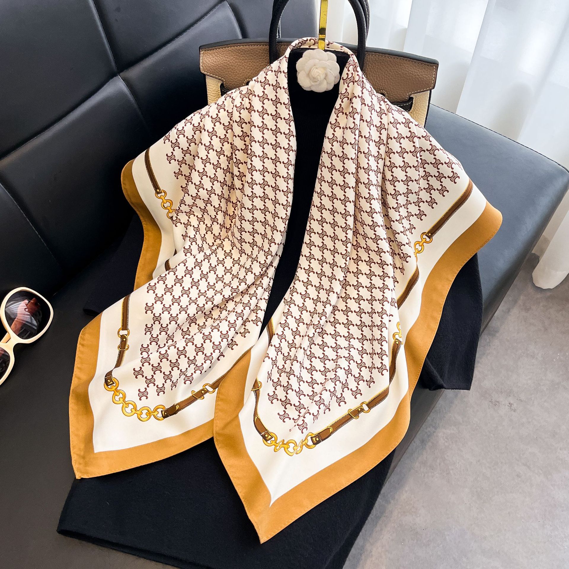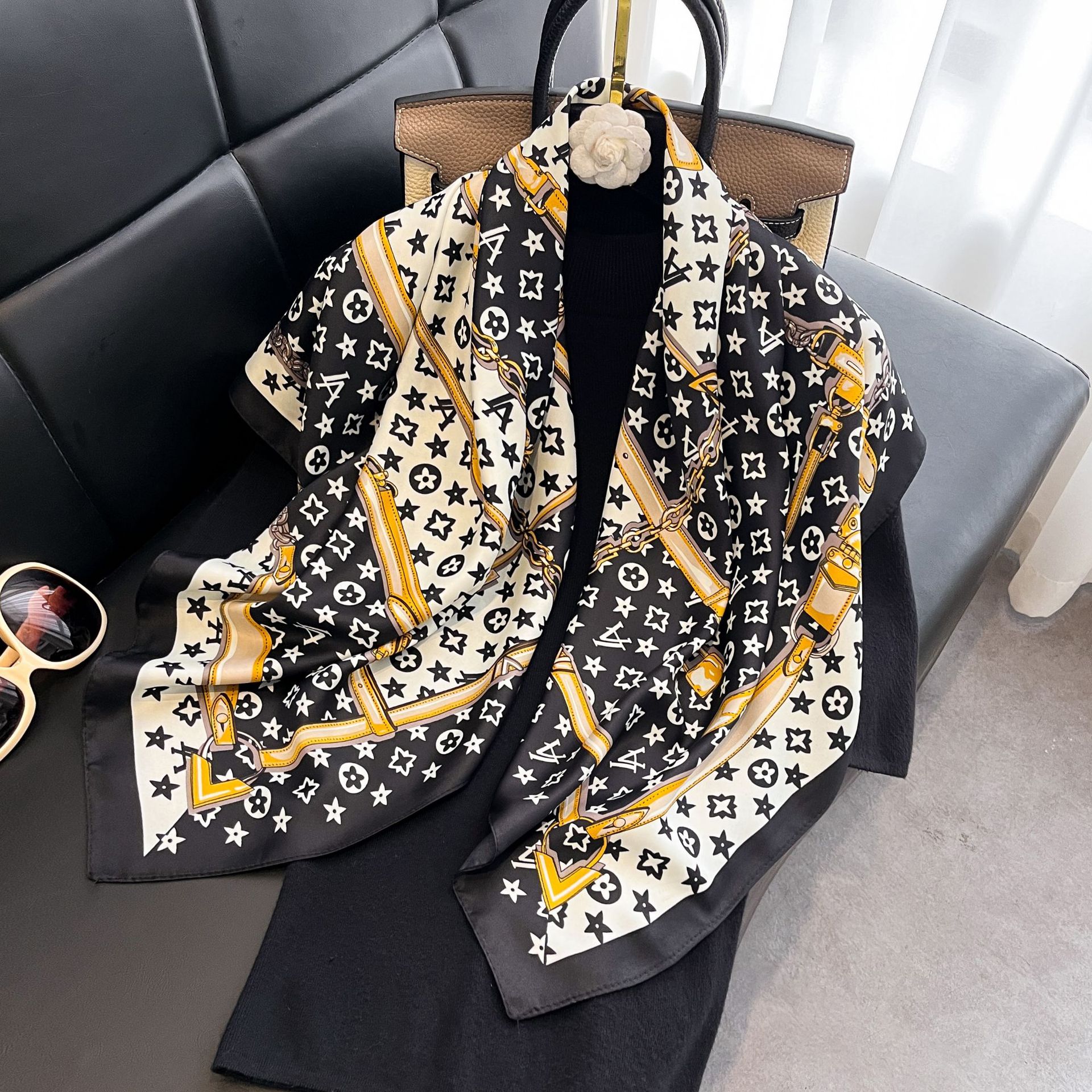 스타 같은 스타일 새로운 스타일 스퀘어 스카프 우아한 기하학적 색 매칭 패턴 모방 실크 대형 스퀘어 스카프 고급 한국 여성 실크 실크 스카프