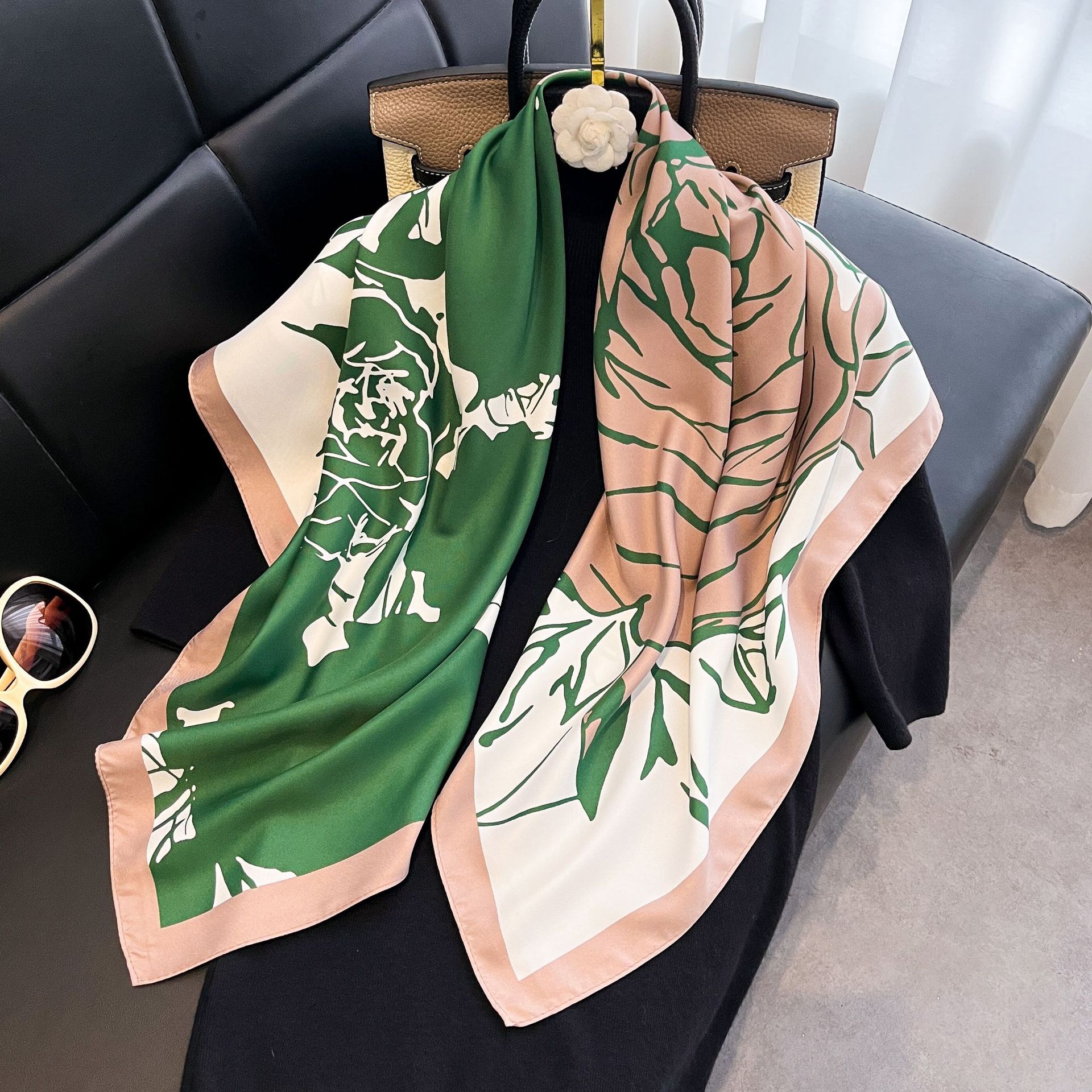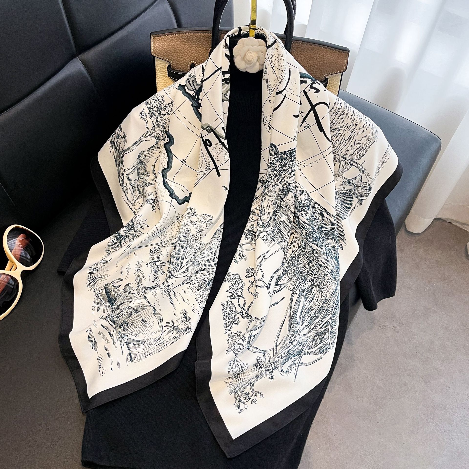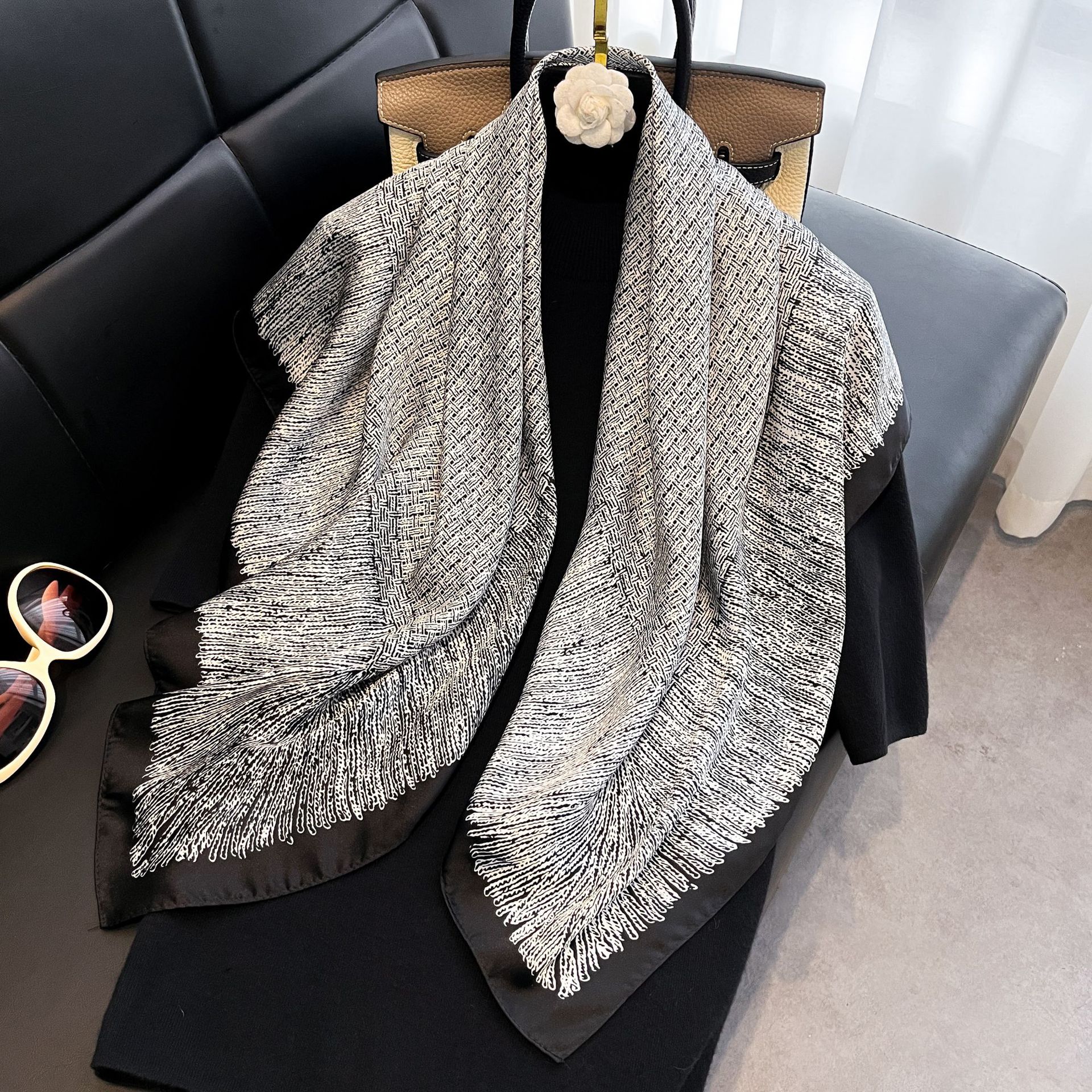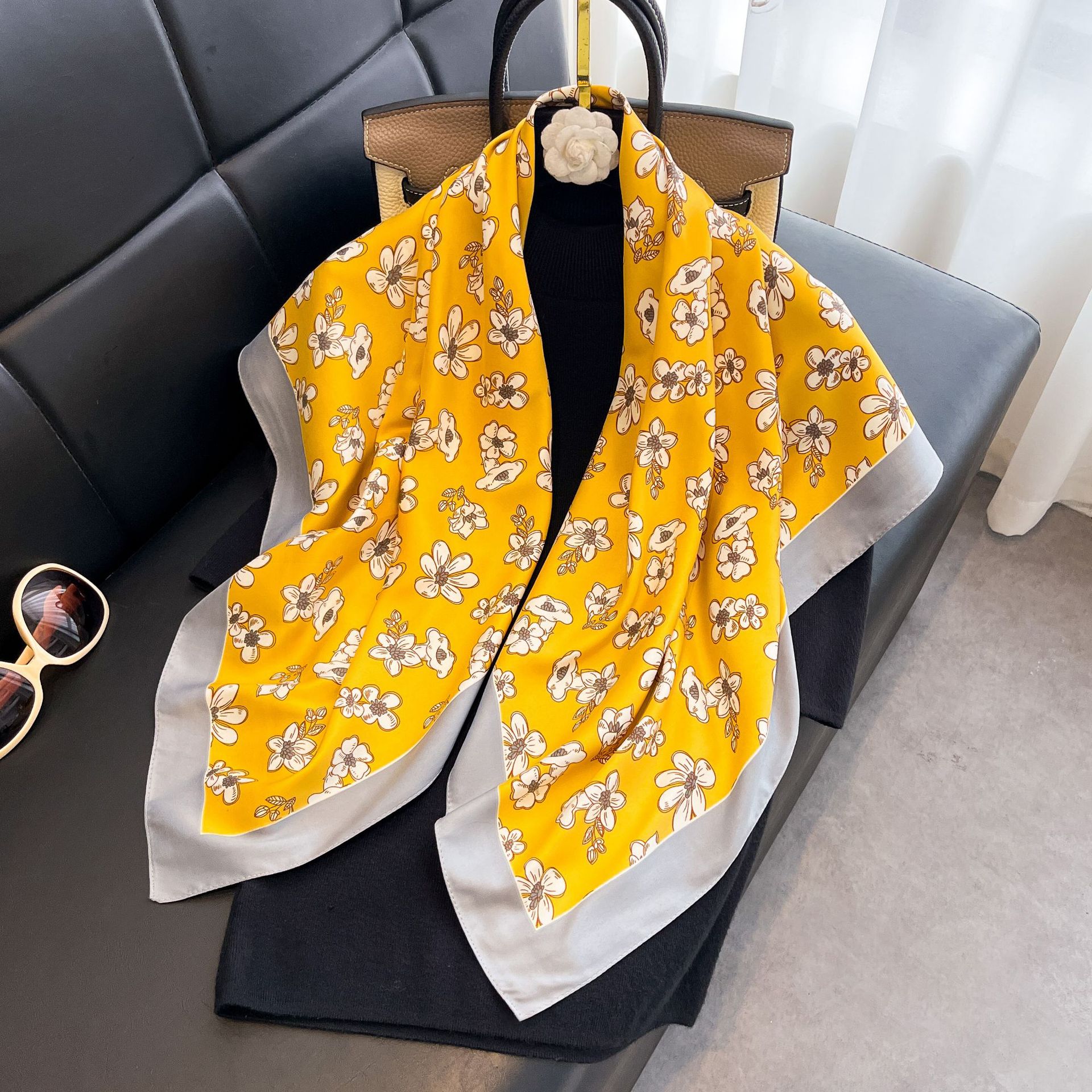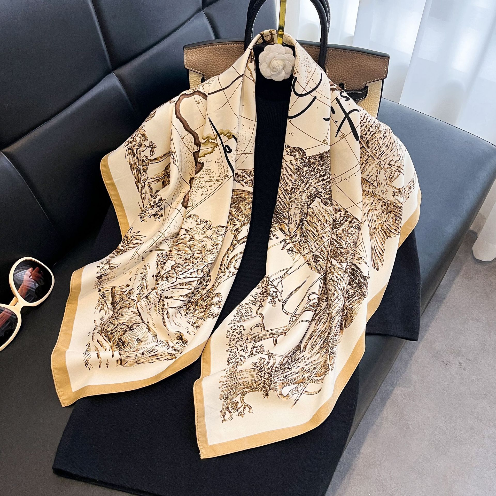 스타 같은 스타일 새로운 스타일 스퀘어 스카프 우아한 기하학적 색 매칭 패턴 모방 실크 대형 스퀘어 스카프 고급 한국 여성 실크 실크 스카프