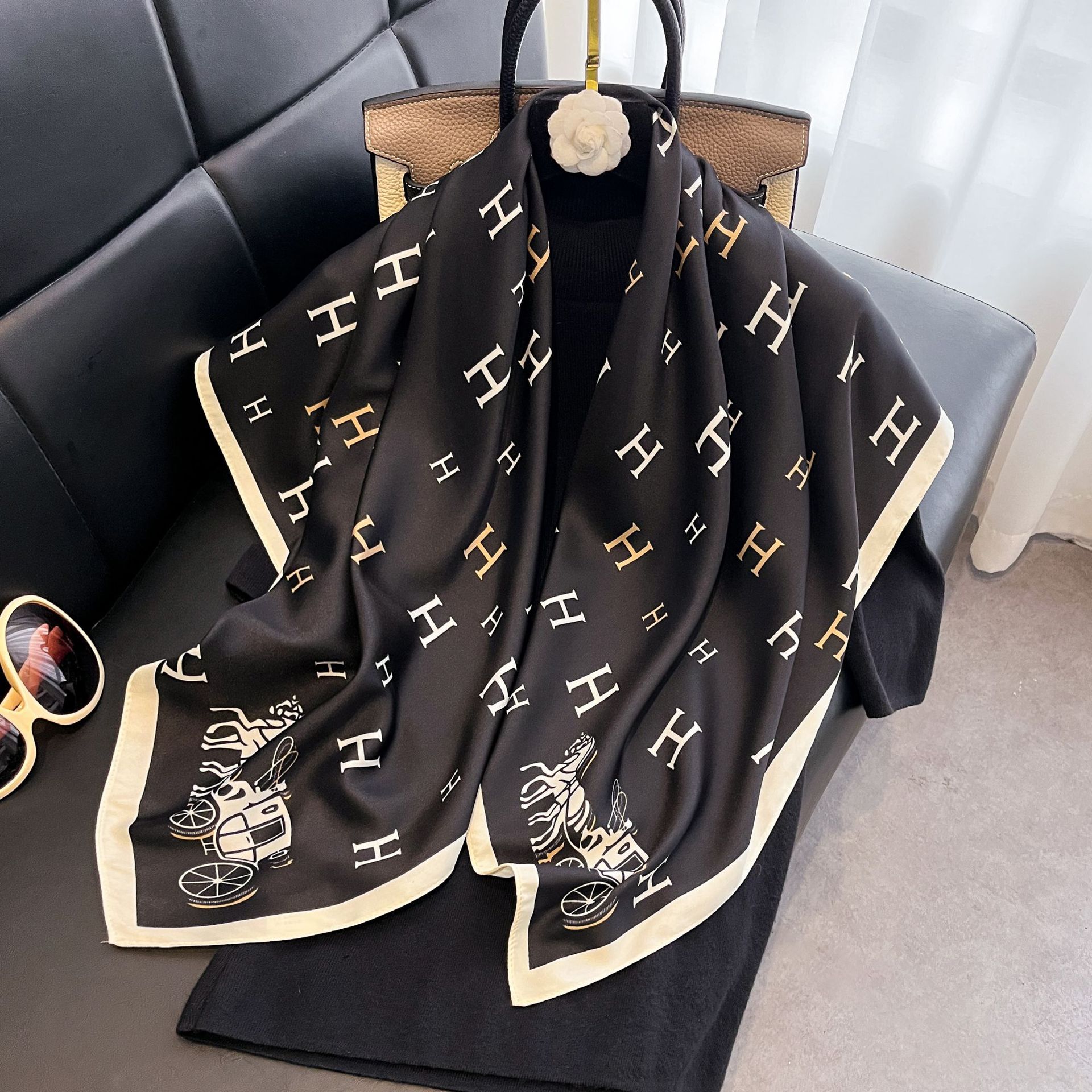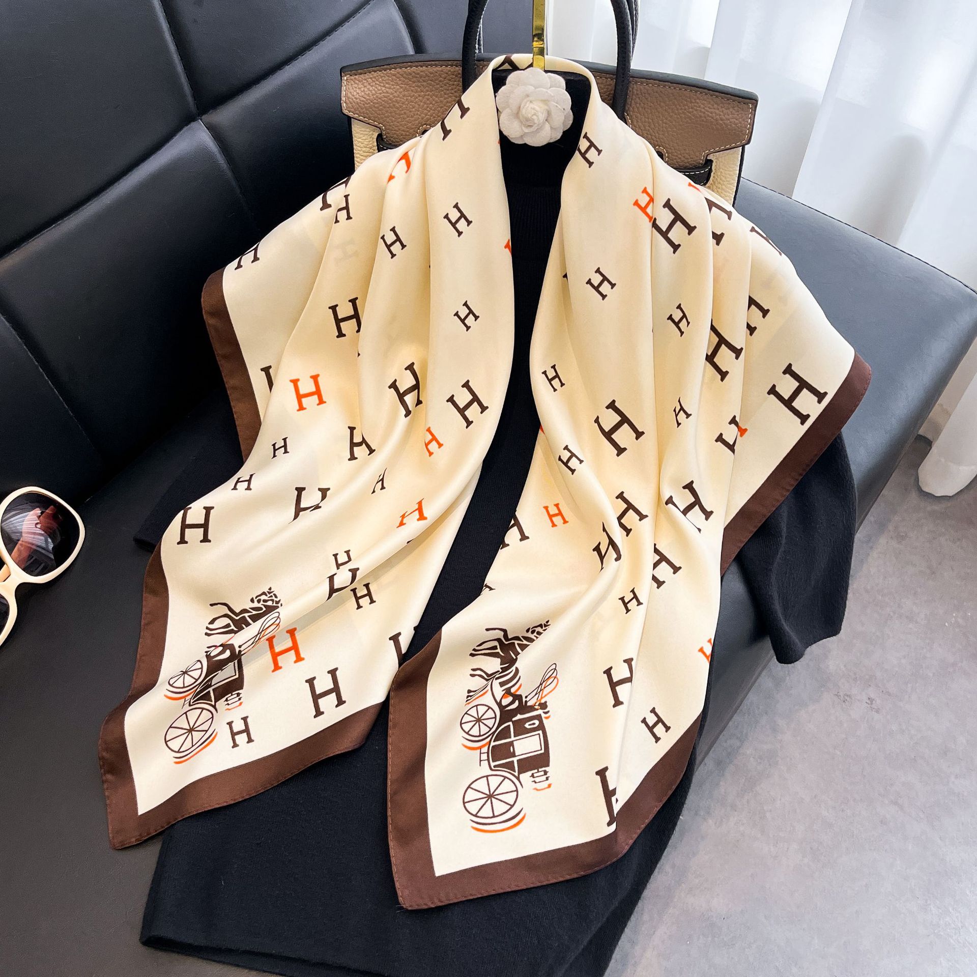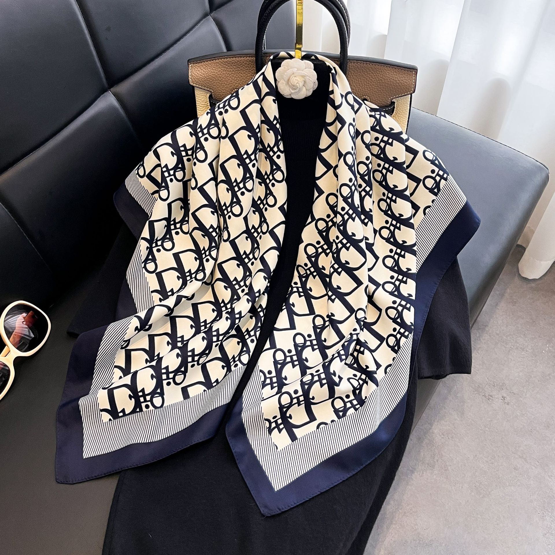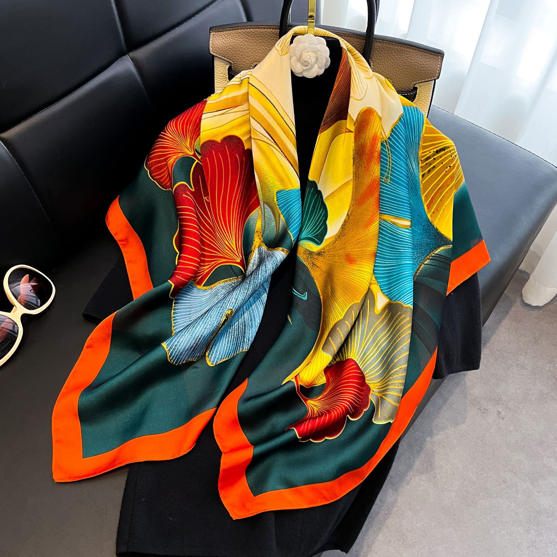 스타 같은 스타일 새로운 스타일 스퀘어 스카프 우아한 기하학적 색 매칭 패턴 모방 실크 대형 스퀘어 스카프 고급 한국 여성 실크 실크 스카프