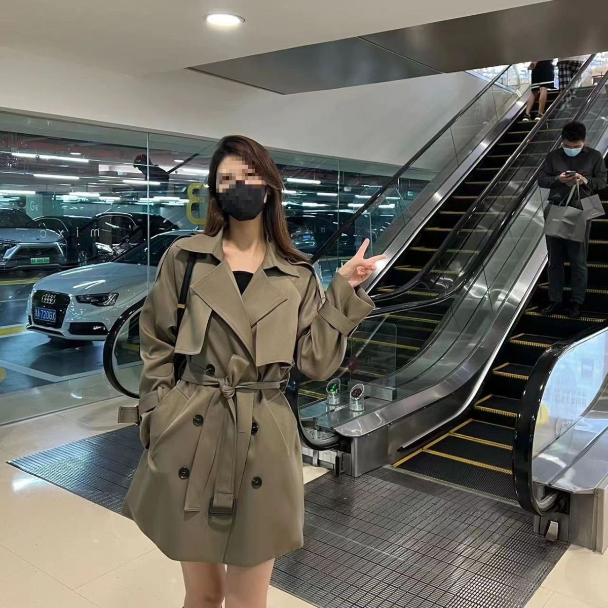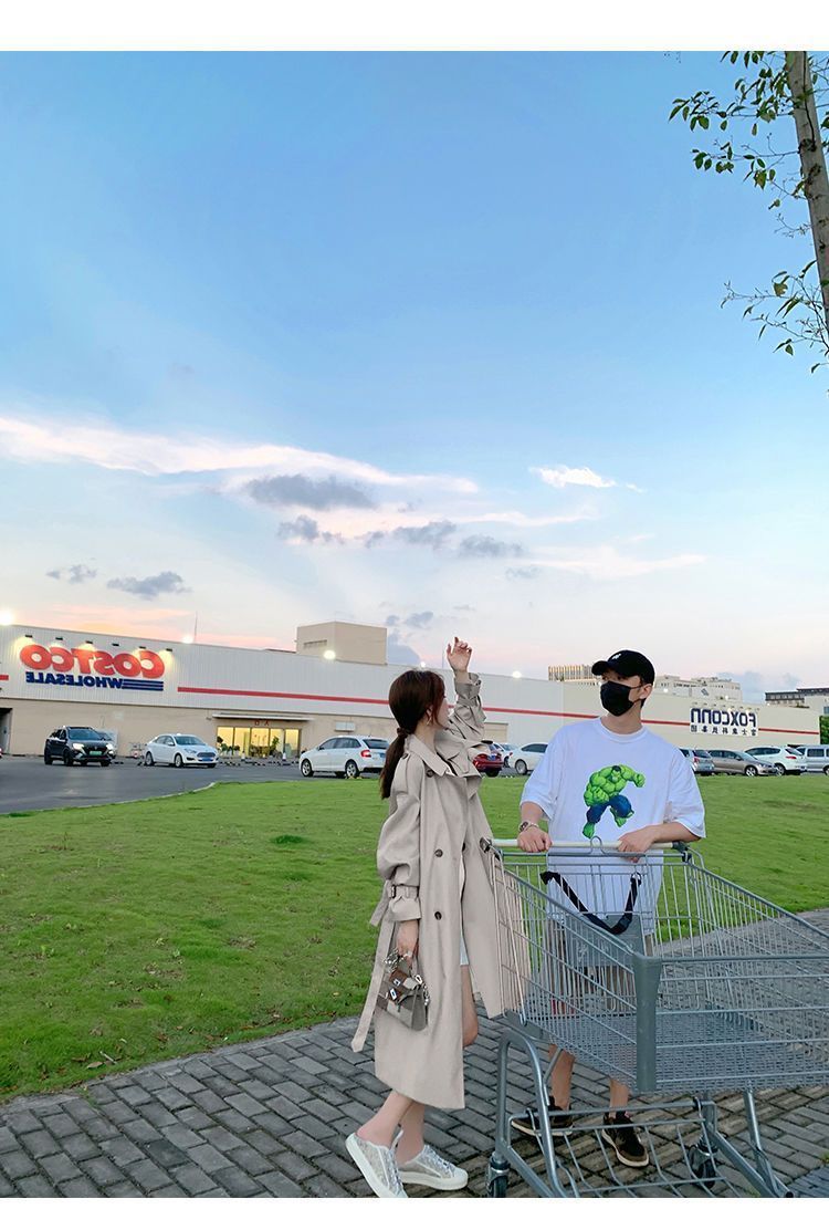 윈드브레이커 코트 여성의 봄과 가을 새로운 도착 한국 스타일 중간 길이 세련된 인기 코트 캐주얼스토어 가기