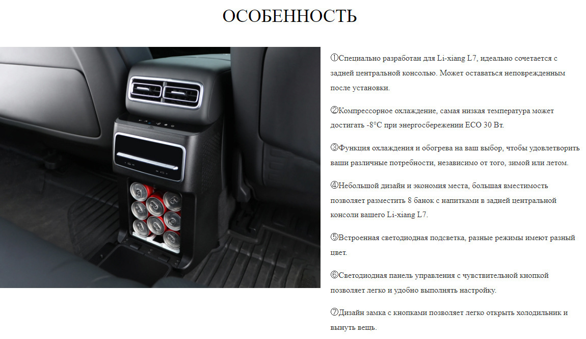 Колку ЛЕ-6 специальный модифицированный автомобильный холодильникодин из мини-холодильников, предназначенный дляЛи-сян L7,100% совпадениезадняя центральная консоль иостаются нетронутыми . Технология компрессорного охлаждения может заставить холодильник достичь минимуматемпература охлаждения -8°C.Охлаждение и согревание функция, которая может удовлетворить ваши различные потребности. Кроме того, он может обеспечить быстрое охлаждение с 32°C до 0°C.в течение 20 минут . Его небольшой дизайн будет большеэкономия места, может содержать 8банки с напитком 330 мл.с5,5 литров емкость. Не беспокойтесь об установке, у нас естьинструменты и видео-руководство который может помочь вам, как установить шаг за шагом, в течение 30 минут можно завершить. Так что не стесняйтесь носить с собой Колкуавтомобильный холодильник на новой энергиис вашим LI L7 наслаждайтесь охлаждением и согреванием в любое время.