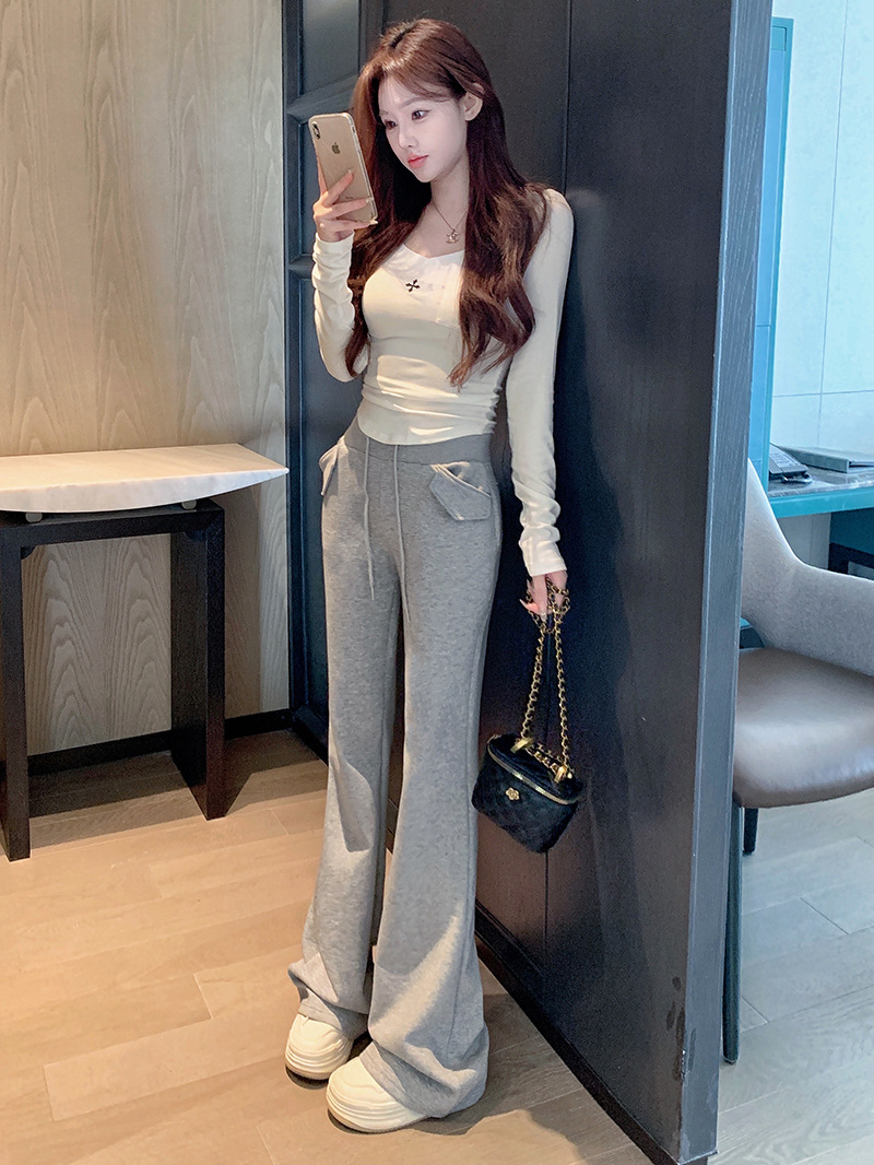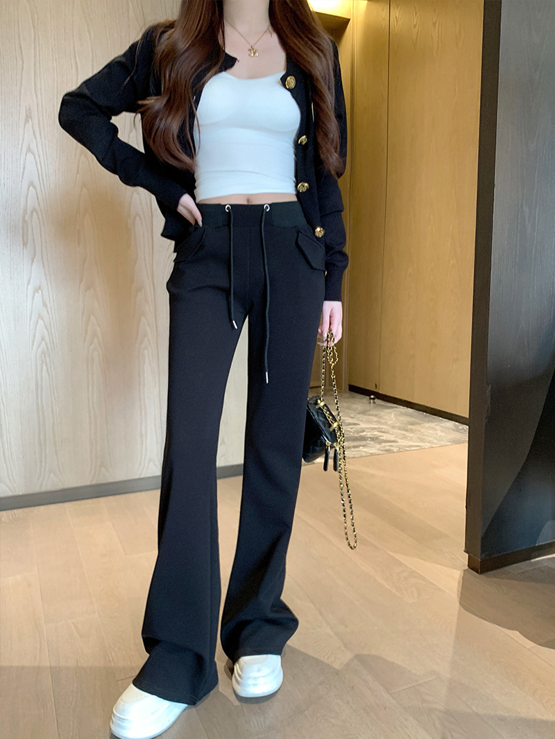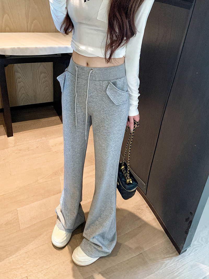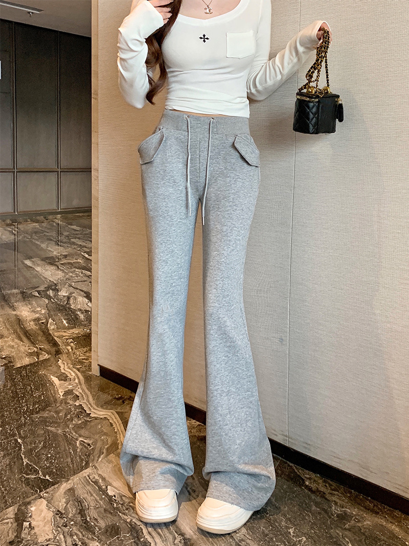 [리얼 샷 하이 퀄리티] 회색 마이크로 팬츠 여성 봄과 가을 2025 새로운 하이 허리 드레이프 슬림 말굽 바지스토어 가기