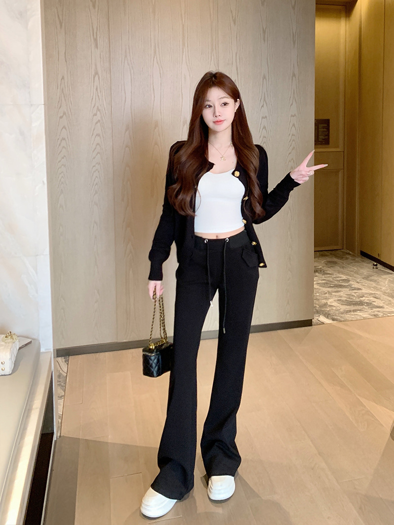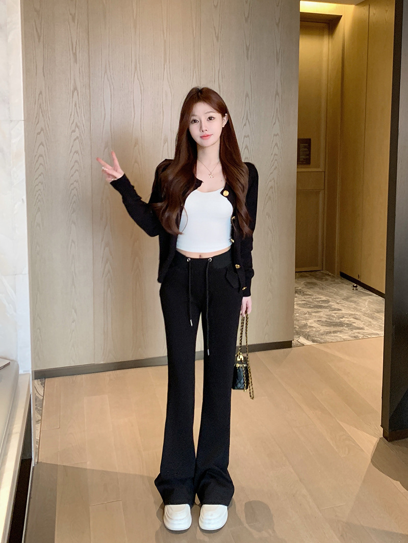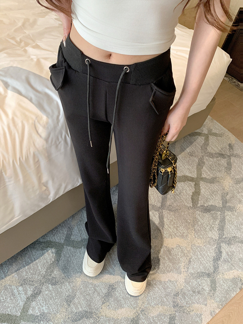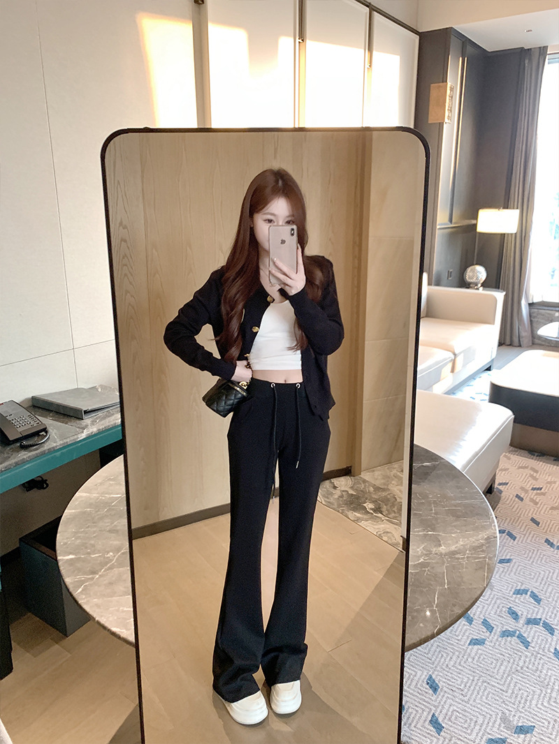 [리얼 샷 하이 퀄리티] 회색 마이크로 팬츠 여성 봄과 가을 2025 새로운 하이 허리 드레이프 슬림 말굽 바지스토어 가기