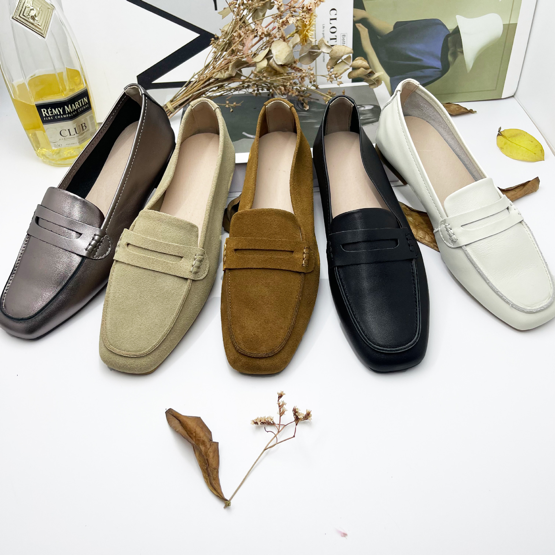 정품 가죽 여성 싱글 신발 새로운 로퍼 스퀘어 토 소프트 하단 소프트 가죽 블랙 올 매치 통근 작업 신발 여성 신발스토어 가기