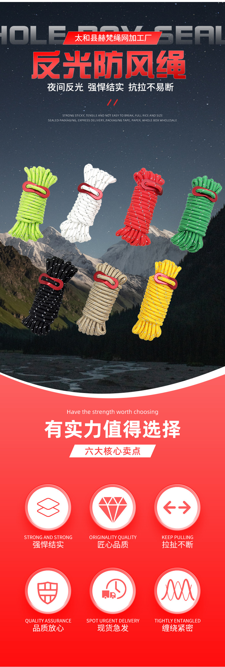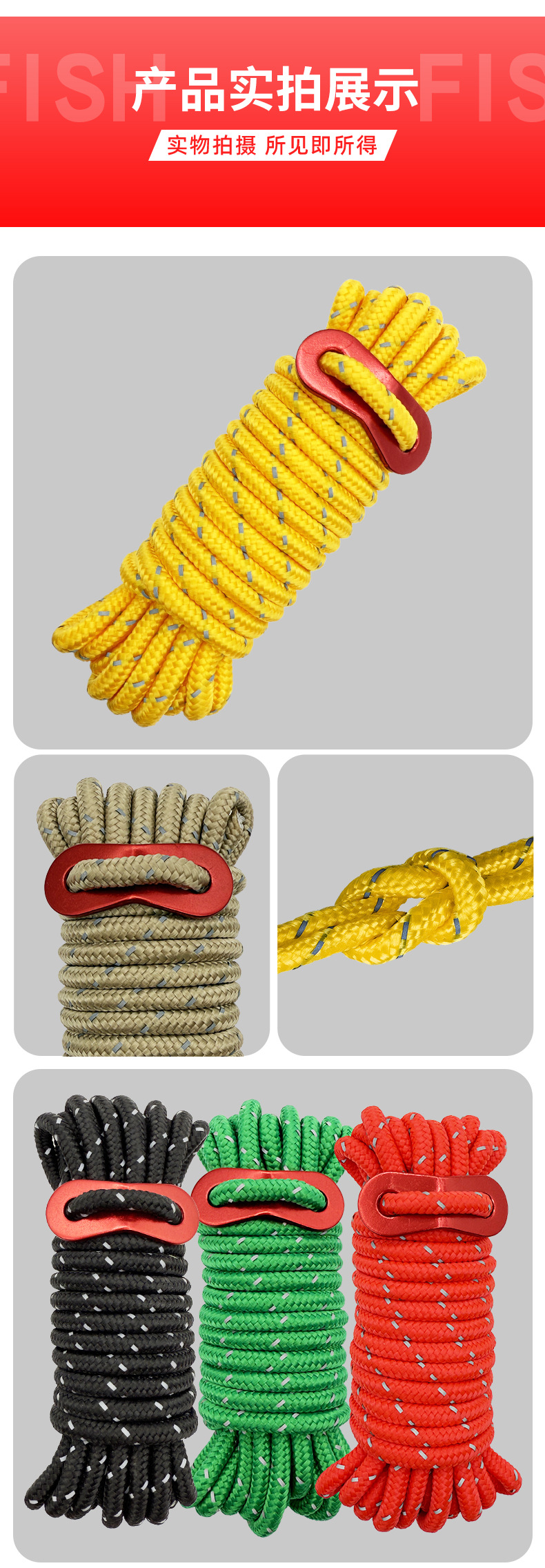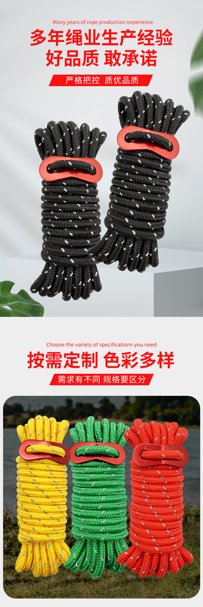 야외 캠핑 텐트 스트레치 캐노피 방풍 로프 5mm 반사 우산 로프 제품 제조 업체 도매스토어 가기