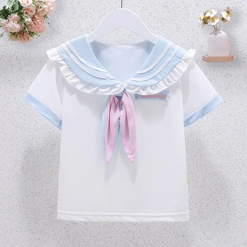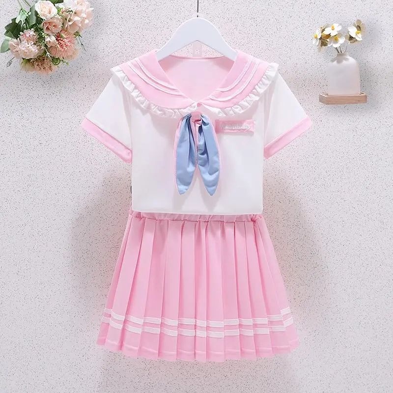 여자 원피스 세트 여름 2025 새로운 서양식 어린이 대학 스타일 짧은 소매 jk 스커트 투피스 패션