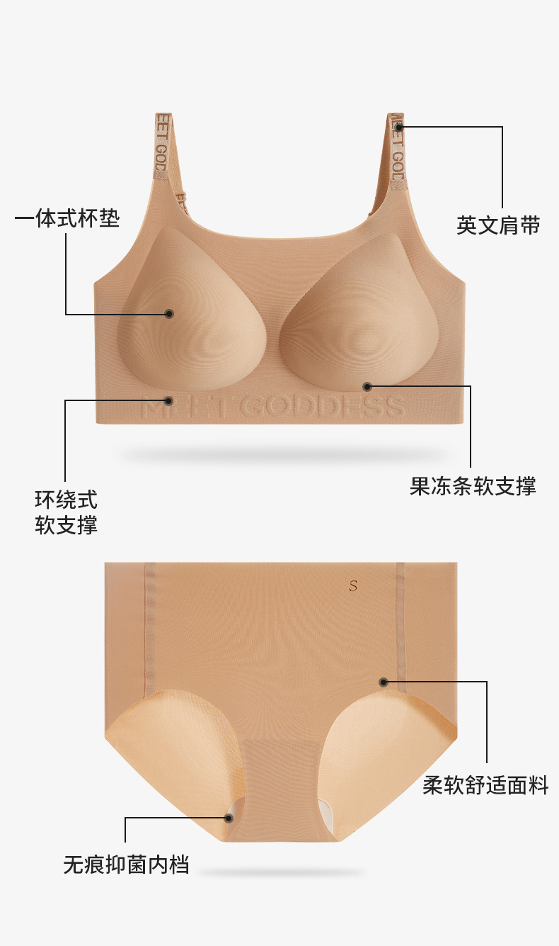 Yiershuang 원활한 액체 재단 브래지어 없음 크기 브래지어 보이지 않는 원피스 살 피부 뷰티 백 속옷 여성 세트
