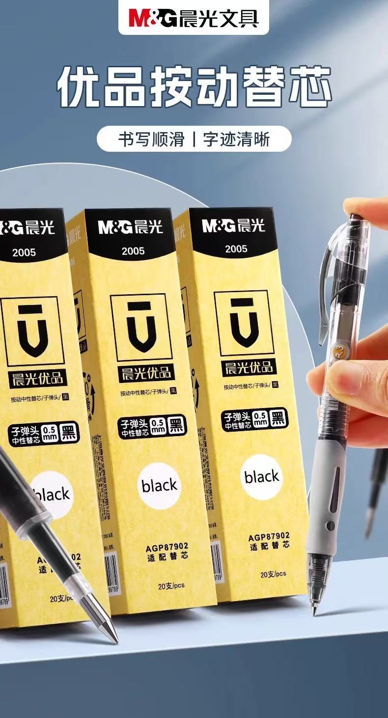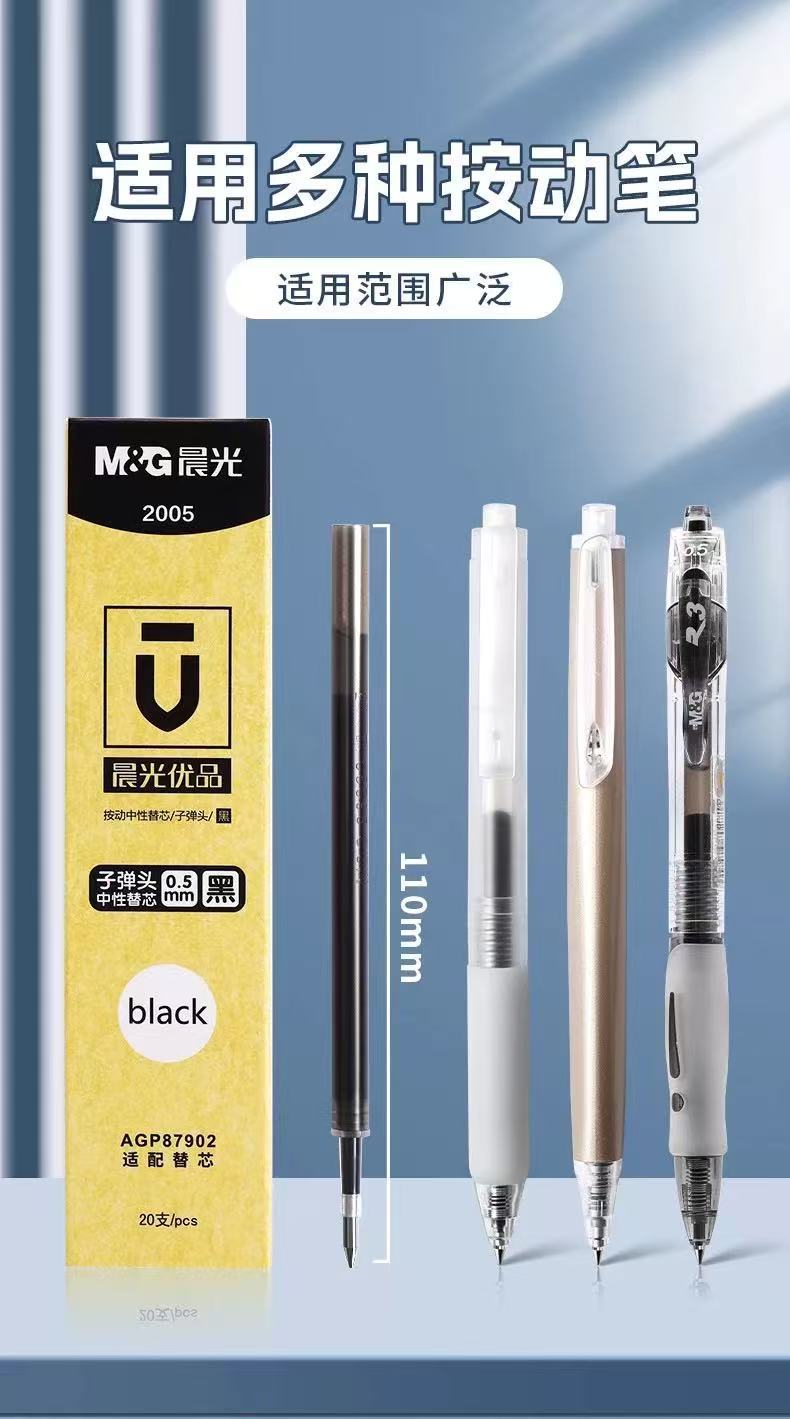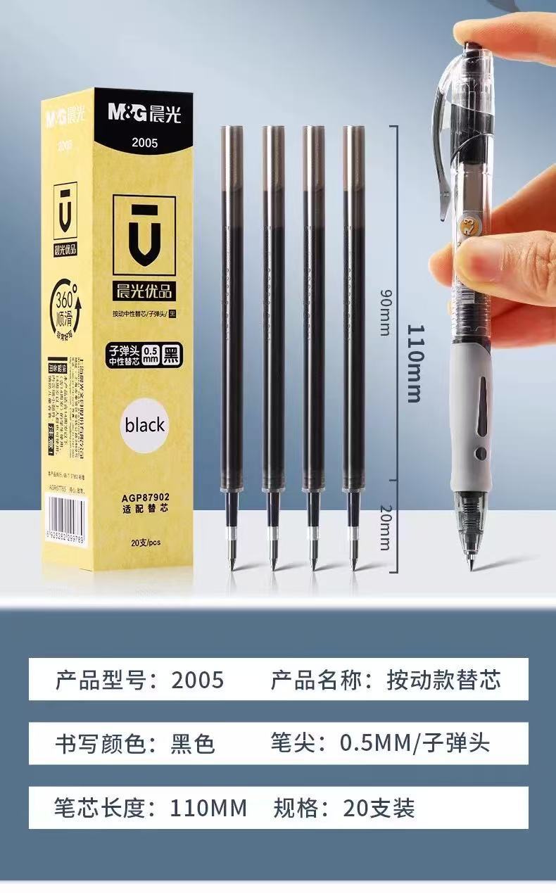 Chenguang Youpin 2005 프레스 중립 리필 0.5mm 블랙 총알 블랙 리필 프레스 리필 87902