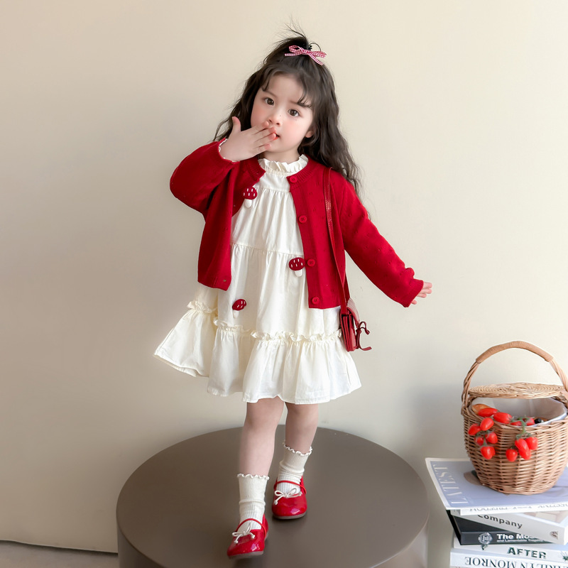 소녀의 봄 원피스 원피스 2025 새로운 스타일 어린이 봄 패션 긴 소매 니트 카디건 아기 공주 원피스스토어 가기