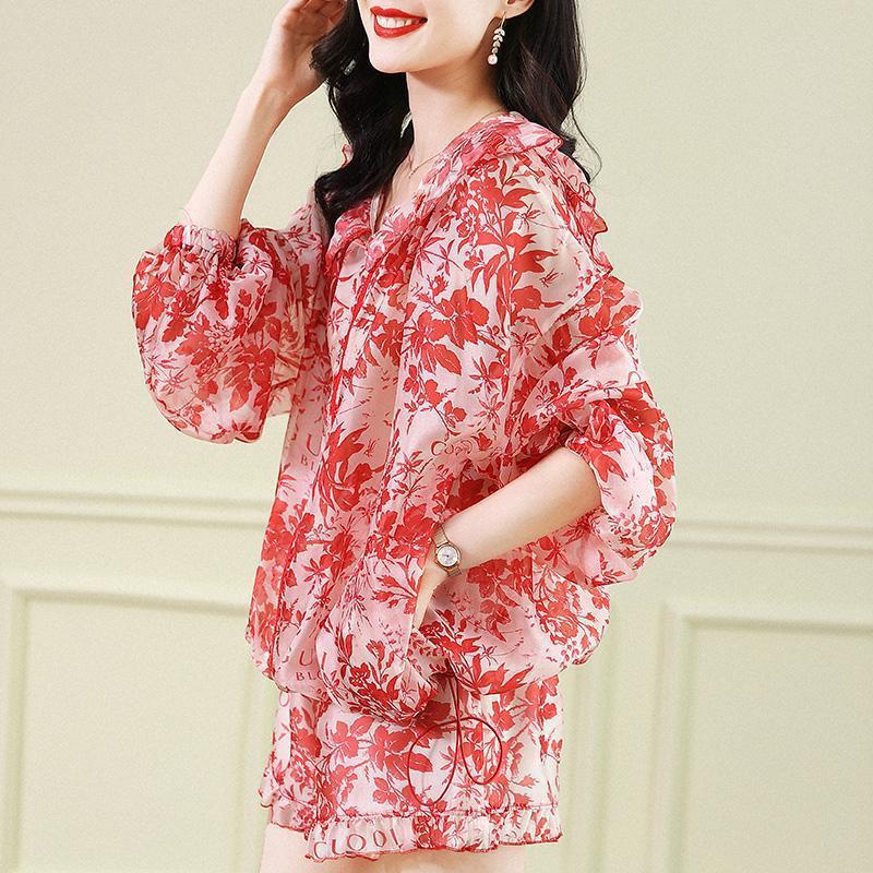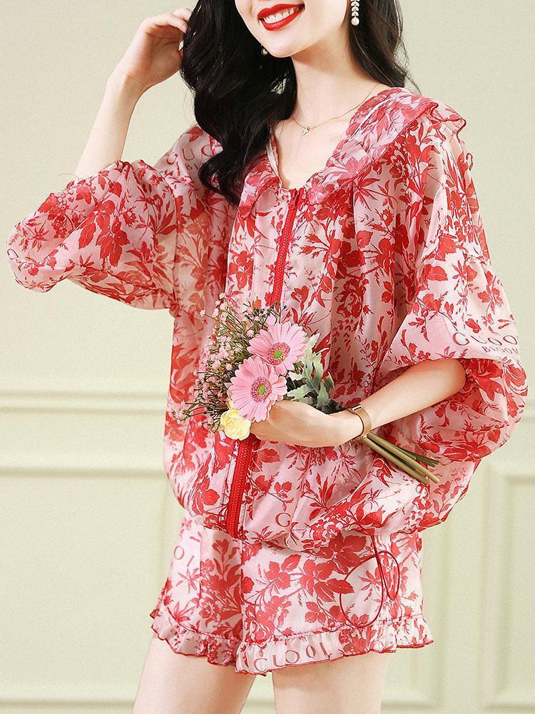 [90 비율] 유럽 역 2024 여름 새로운 유럽 인쇄 휴가 느슨한 러프 후드 선 스크린