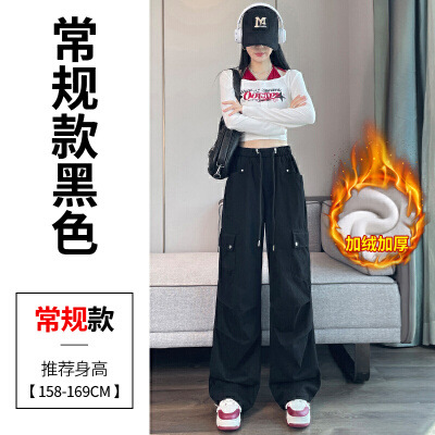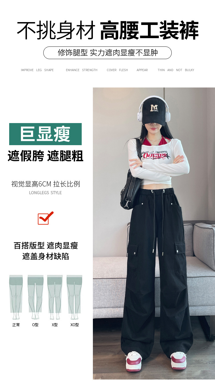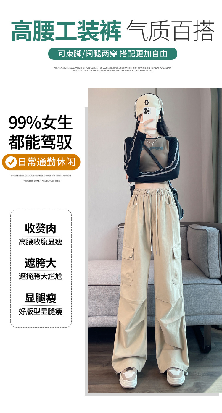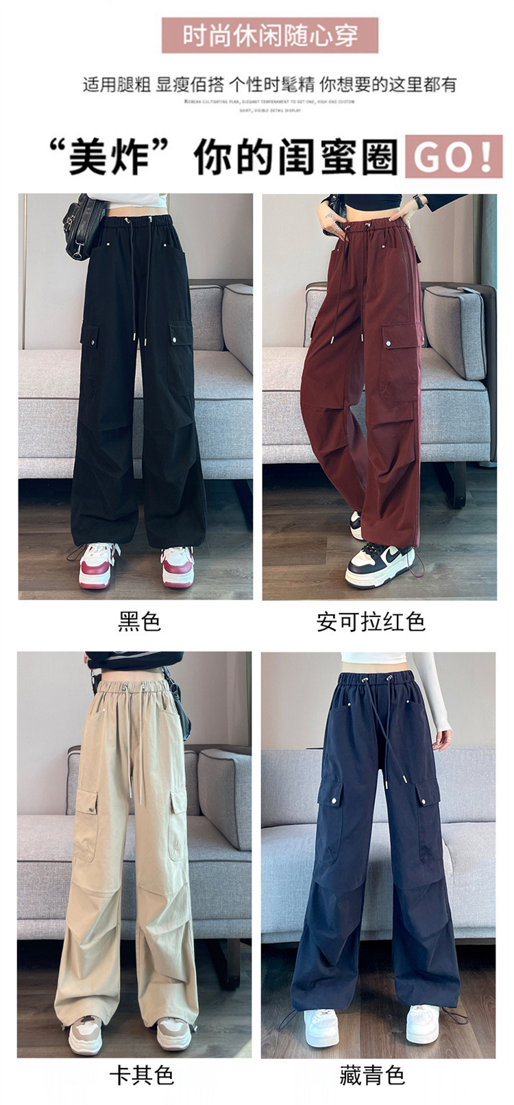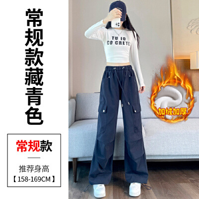 네이비 크록 바지 여성의 가을 2025 새로운 미국 낙하산 바지 작은 파란색 시원한 사 산 넓은 다리 바지스토어 가기