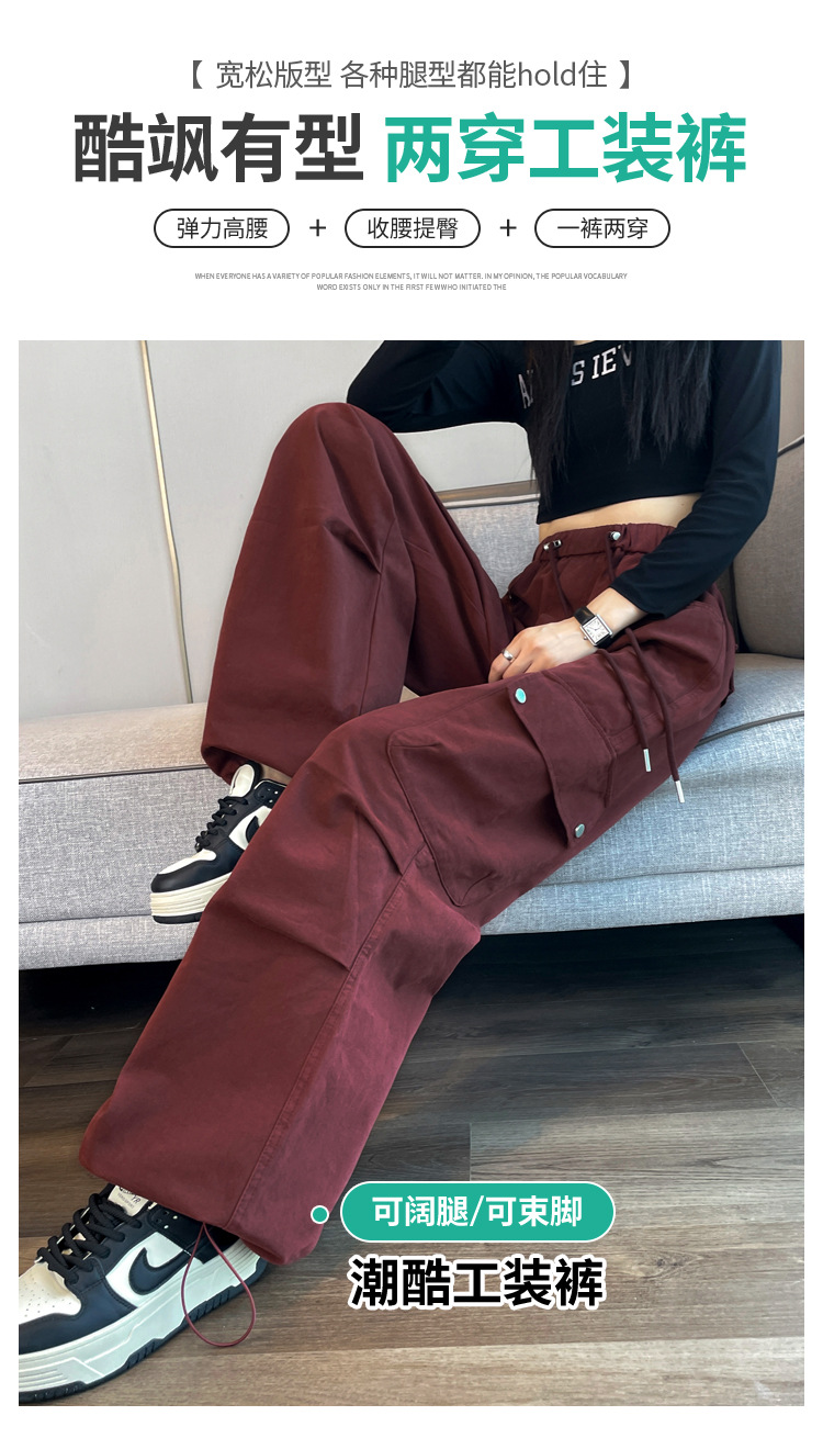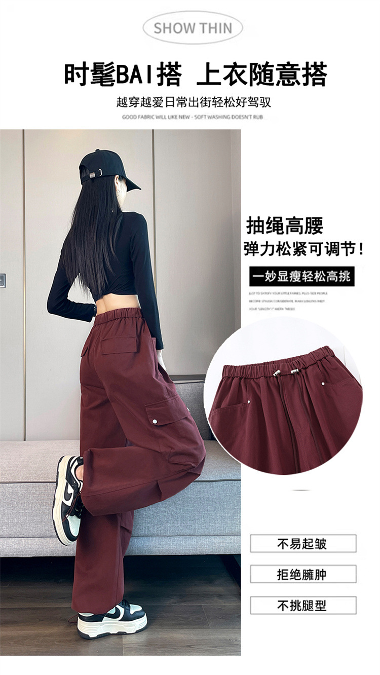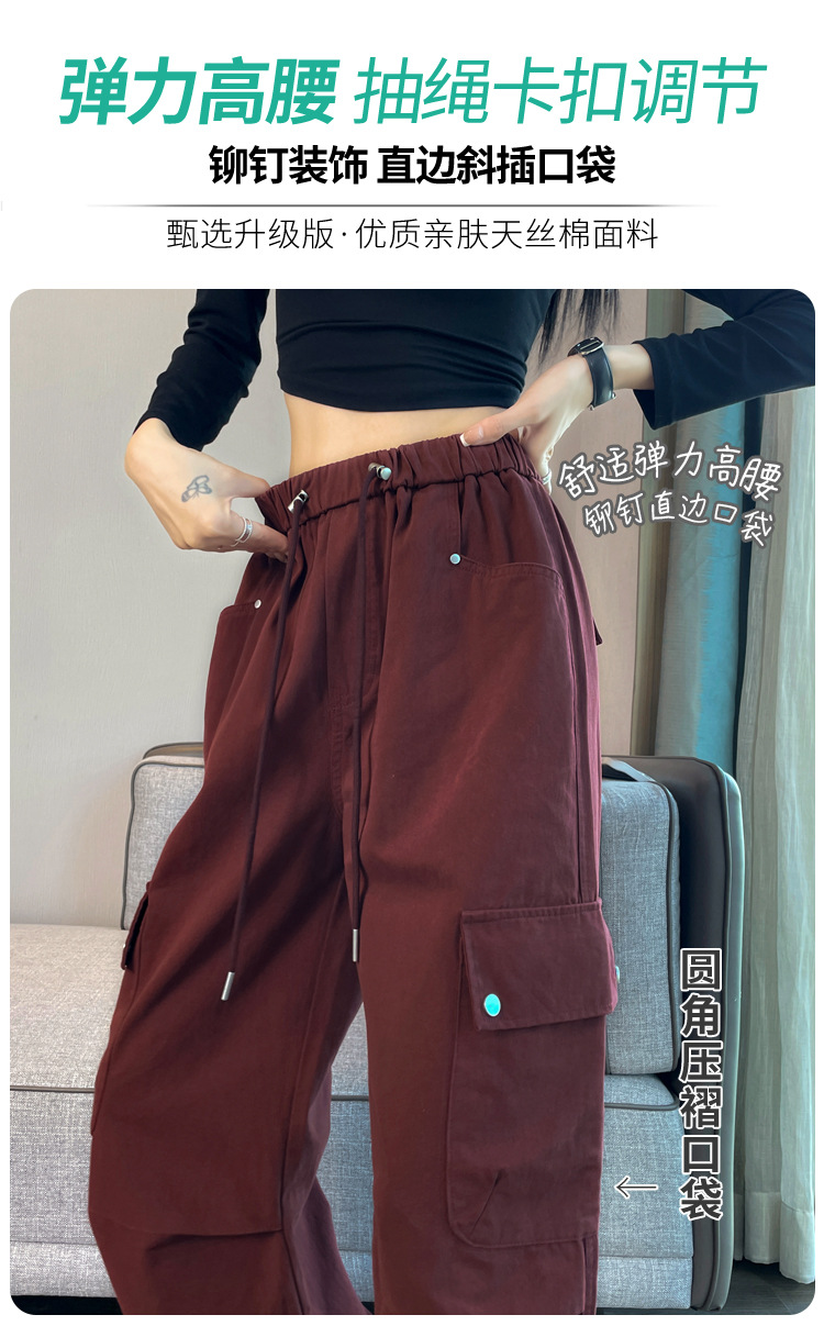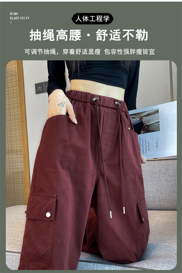 네이비 크록 바지 여성의 가을 2025 새로운 미국 낙하산 바지 작은 파란색 시원한 사 산 넓은 다리 바지스토어 가기