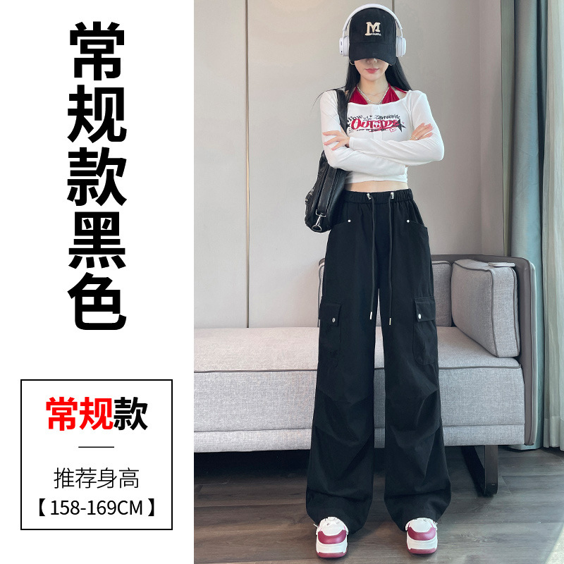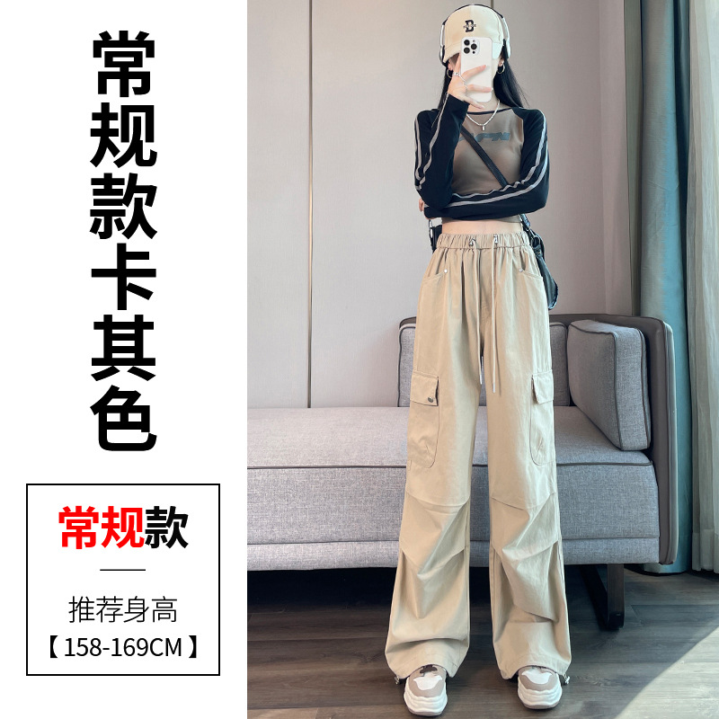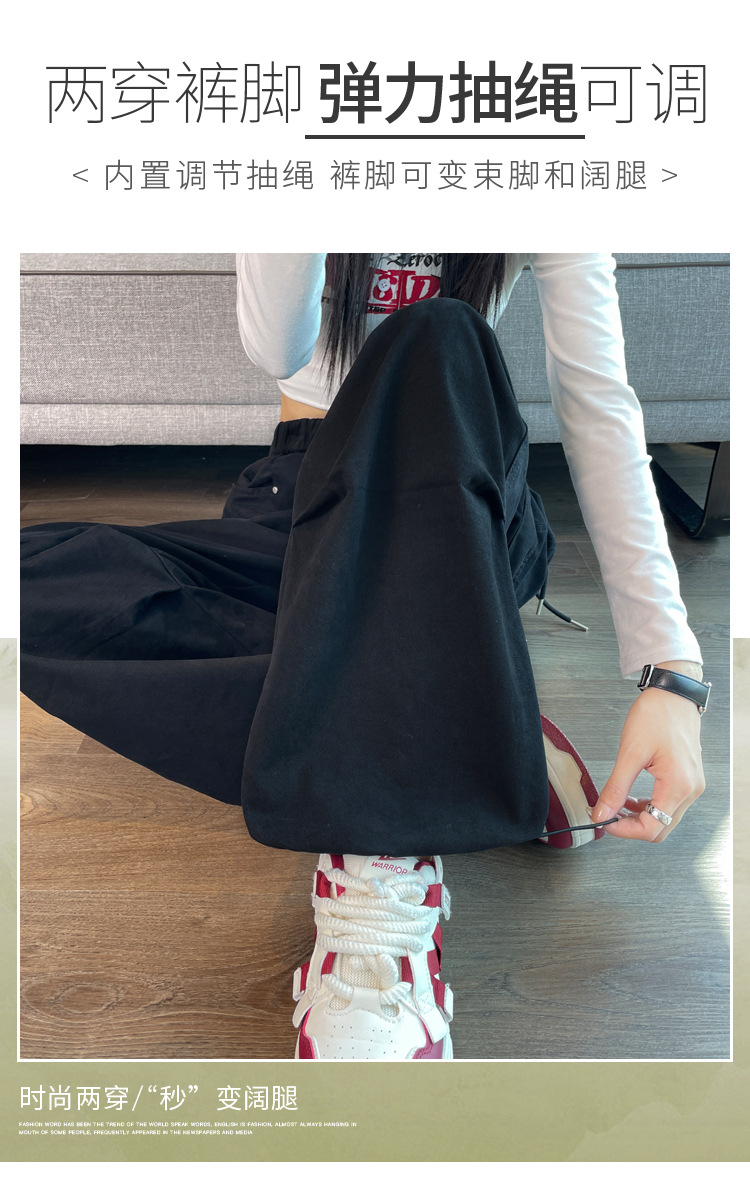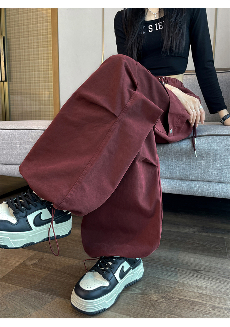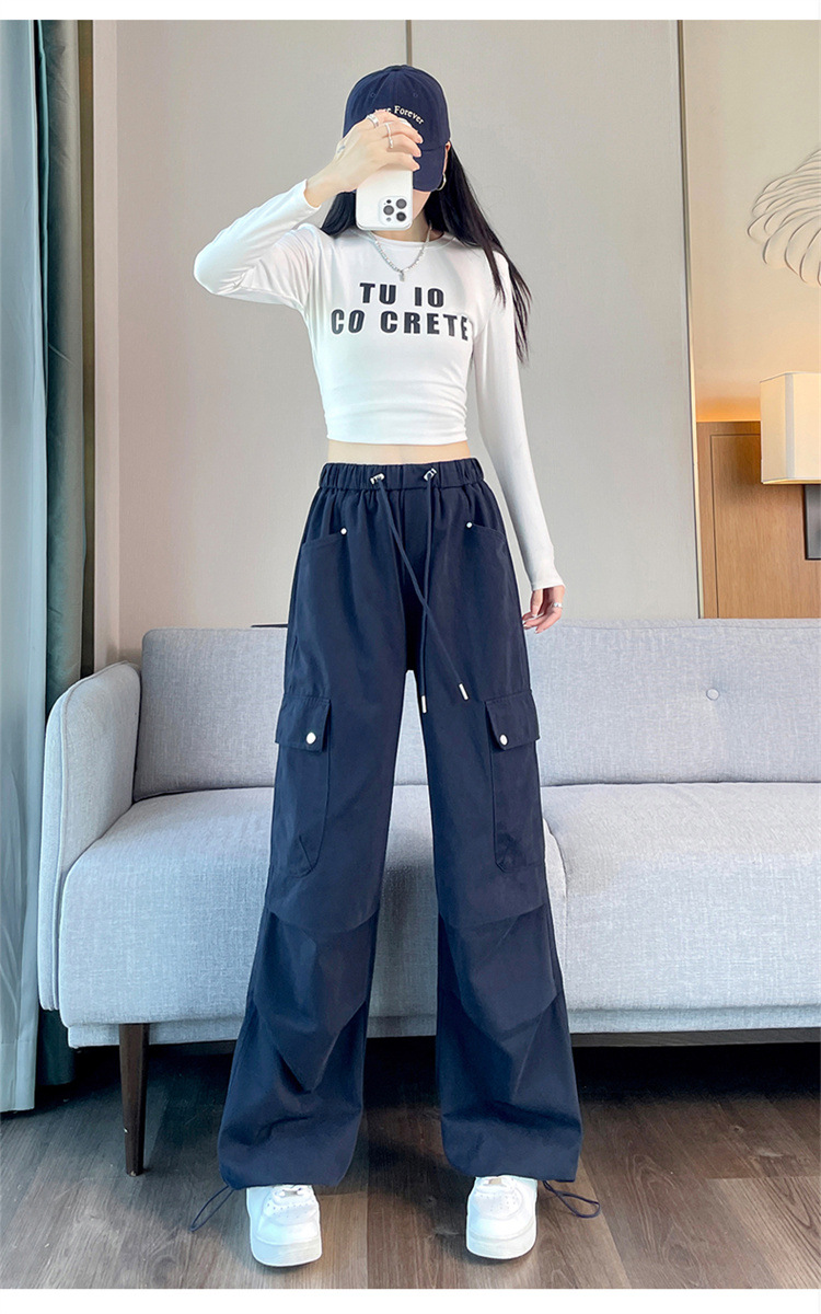 네이비 크록 바지 여성의 가을 2025 새로운 미국 낙하산 바지 작은 파란색 시원한 사 산 넓은 다리 바지