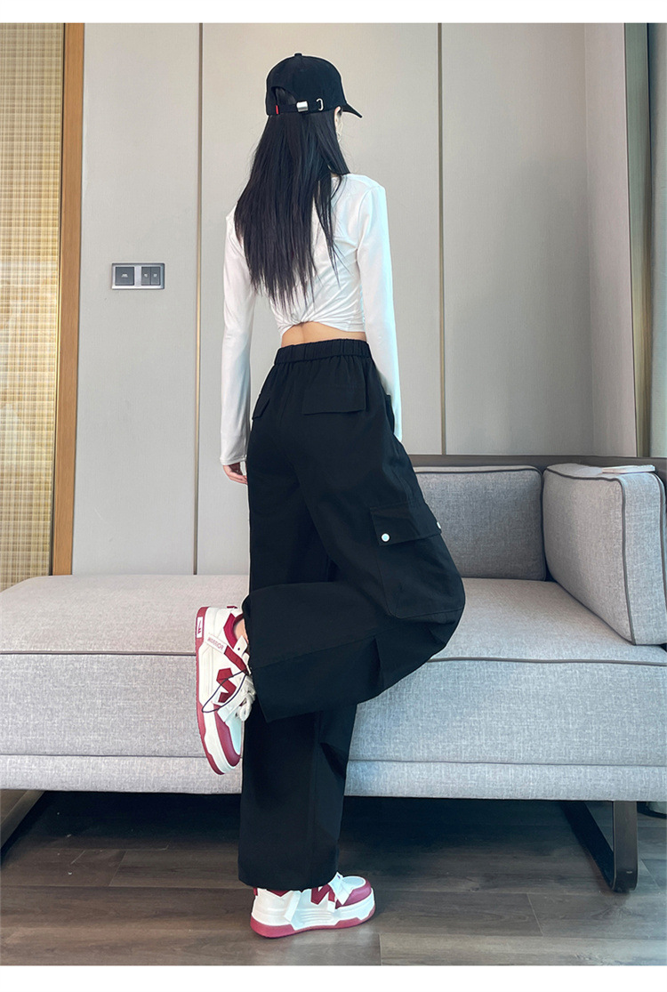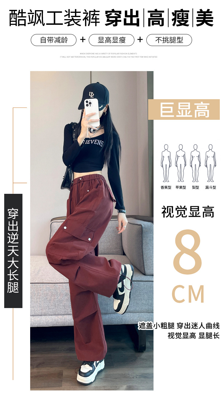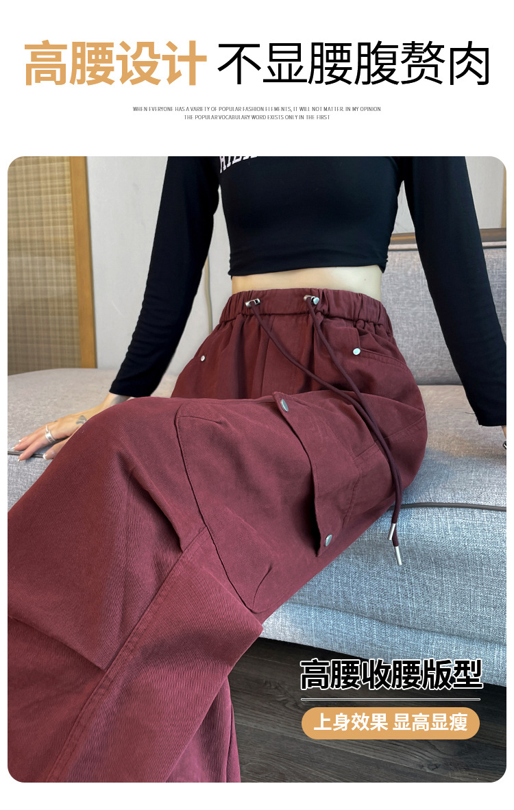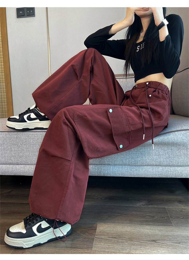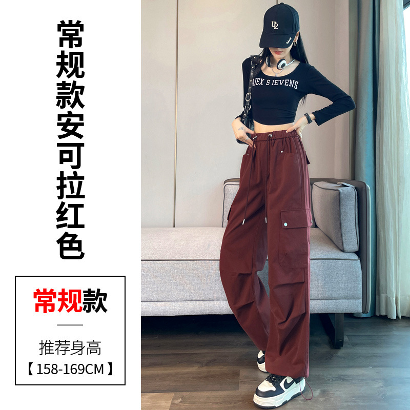 네이비 크록 바지 여성의 가을 2025 새로운 미국 낙하산 바지 작은 파란색 시원한 사 산 넓은 다리 바지