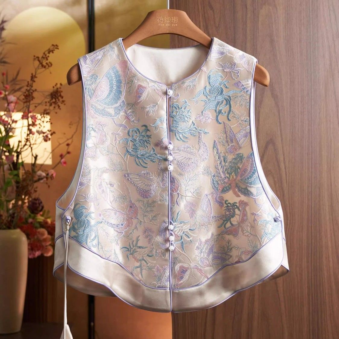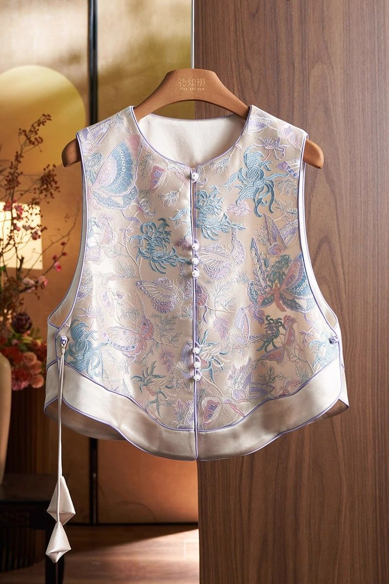 새로운 중국 조끼 여성 Brocade Jacquard National Style Vest 봄과 가을 수정 된 Tang 세트 Waistband National Fashion Sleeveless Vest Jacket스토어 가기