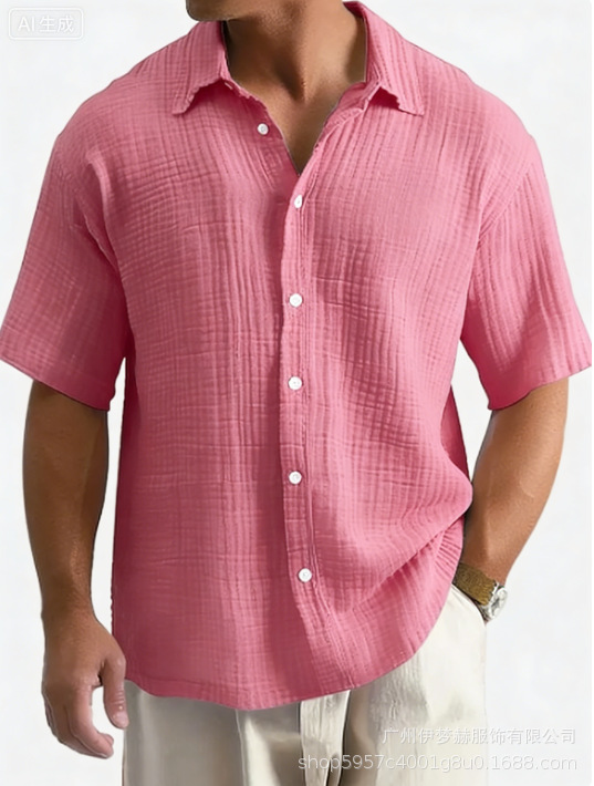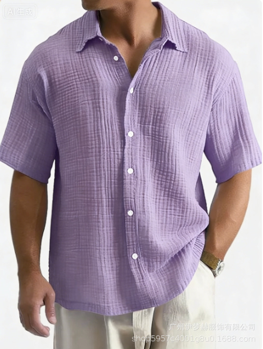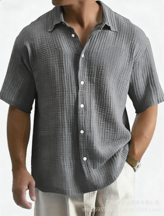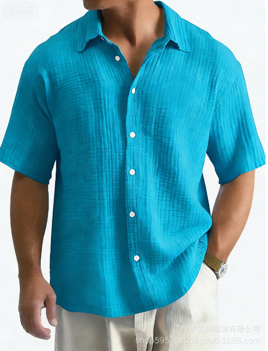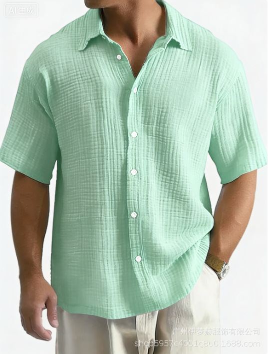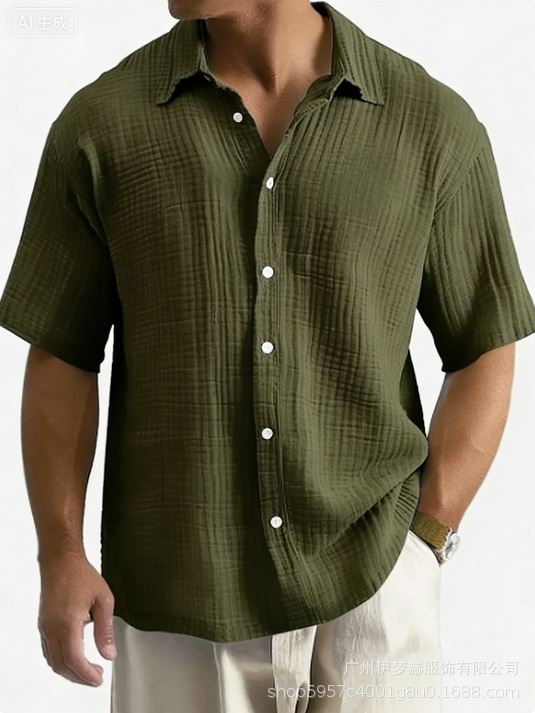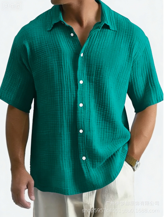 유럽과 미국의 국경 아마존 틱톡 테무 남성 여름 새로운 느슨한 캐주얼 퓨어 코튼 반팔 셔츠스토어 가기