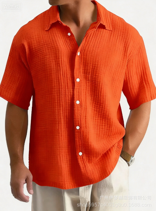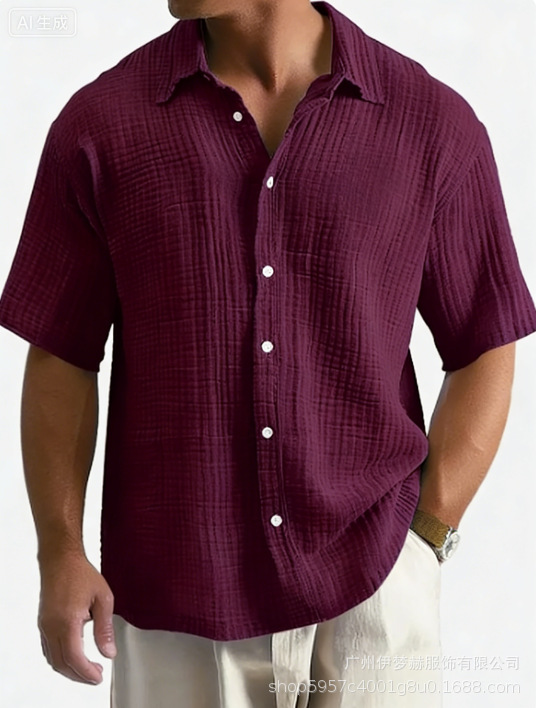 유럽과 미국의 국경 아마존 틱톡 테무 남성 여름 새로운 느슨한 캐주얼 퓨어 코튼 반팔 셔츠