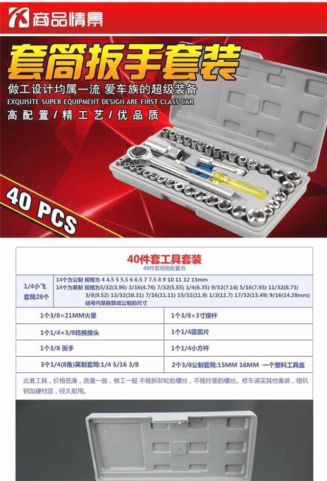 독일 수입 40 조각 조합 도구 자동차와 오토바이 래칫 렌치 빵 다기능 유지 보수 도구 부품스토어 가기