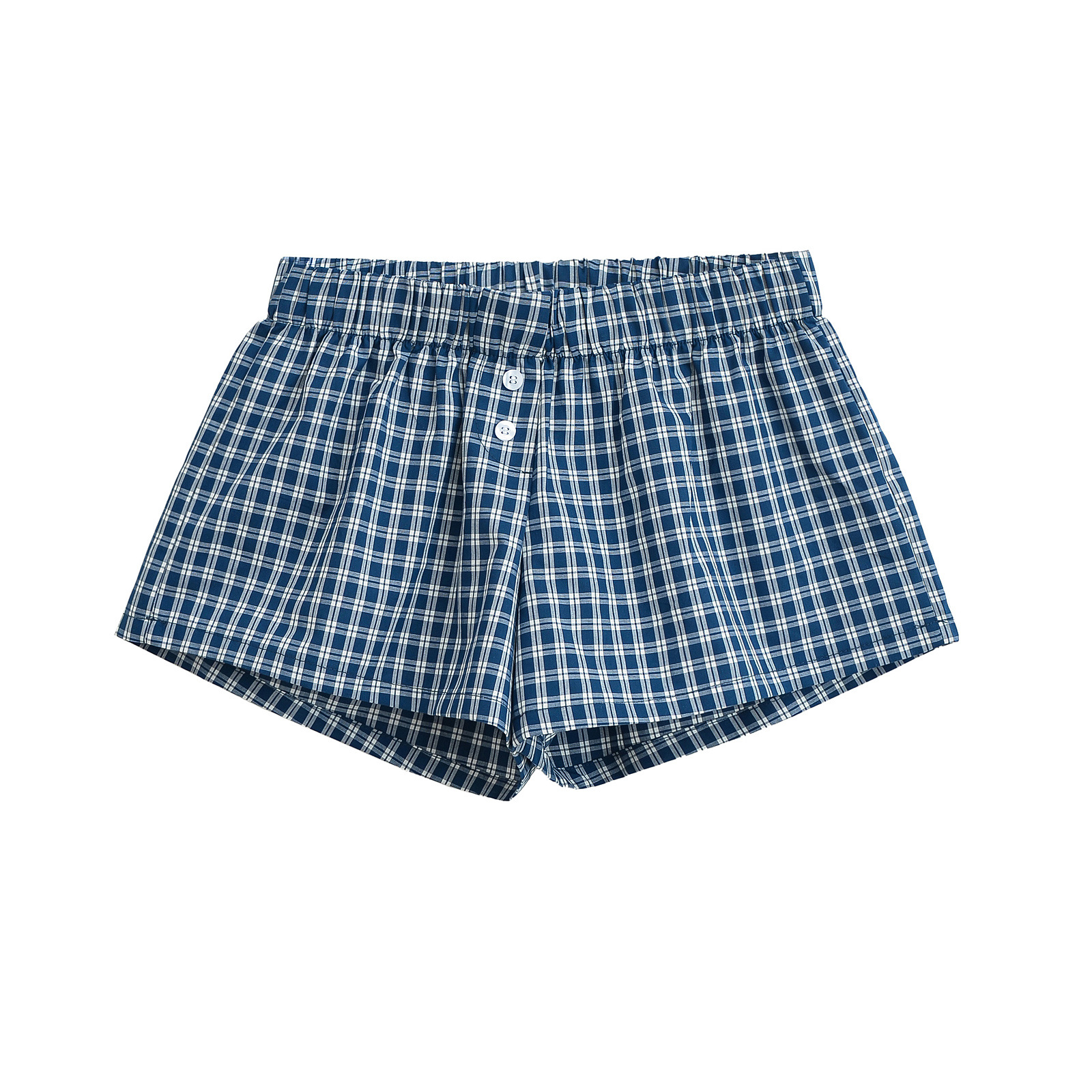 1379-유럽과 미국 스타일의 뜨거운 소녀 느슨한 체크 무늬 넓은 다리 반바지 여성의 2025 새로운 탄성 허리 버튼 캐주얼 핫 팬츠스토어 가기