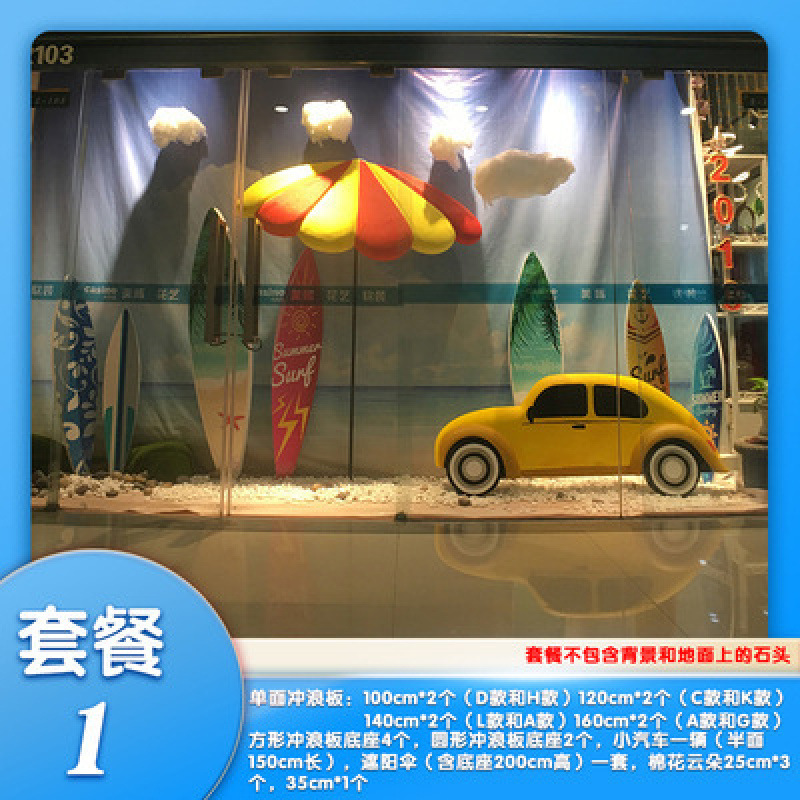 여름 거품 서핑 보드 해변 휴일 스타일 소품 창 DP 포인트 전시 홀 활동 4S 상점 무대 장식