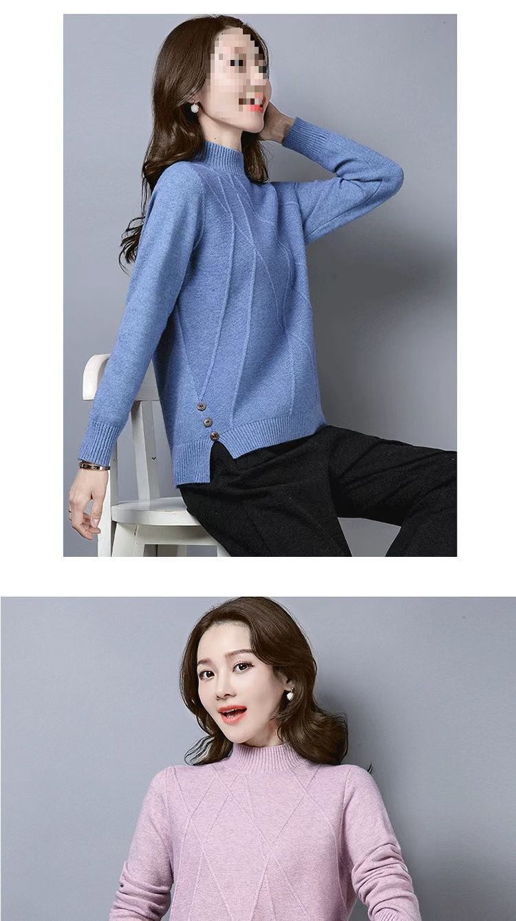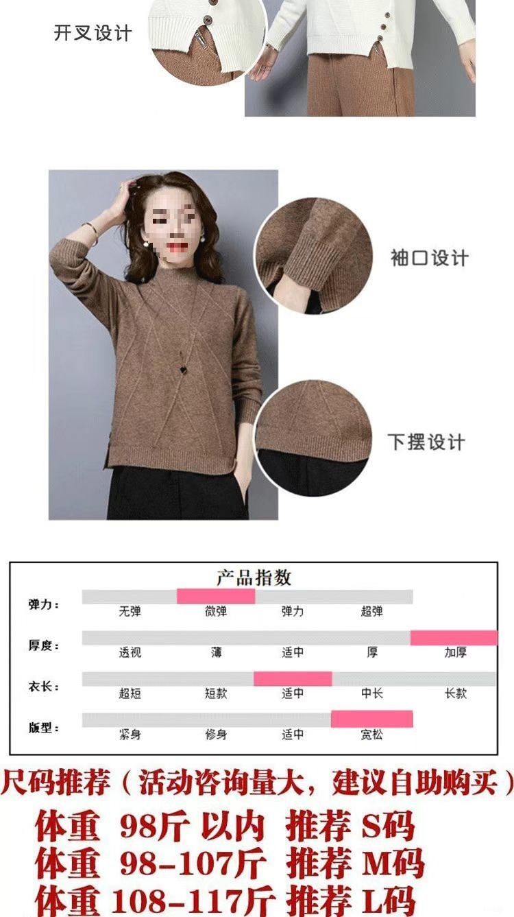 기모/아니 기모 스웨터 여성 풀오버 두꺼운 짧은 하프 터틀넥 느슨한 플러스 사이즈 한국 스타일 니트 베이스 셔츠 트렌디스토어 가기