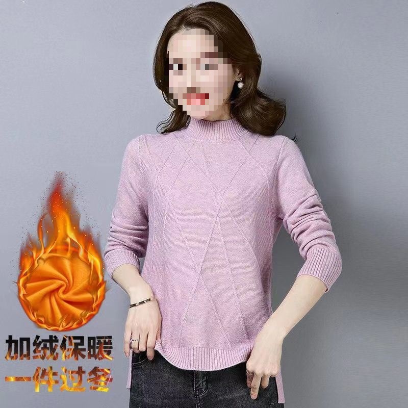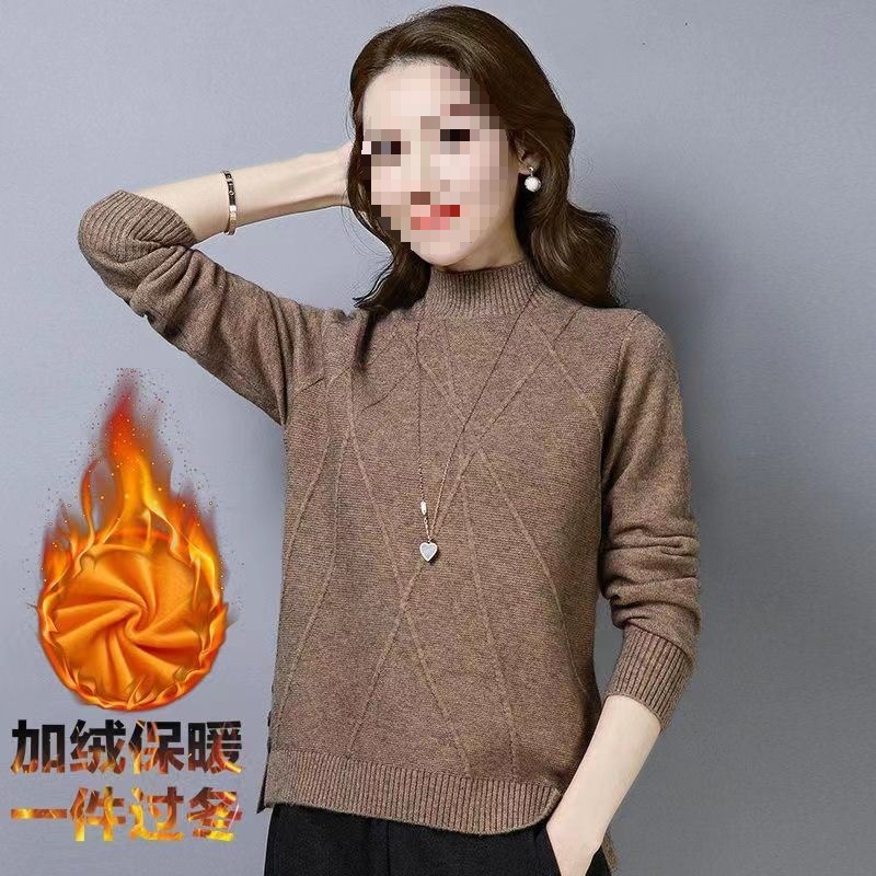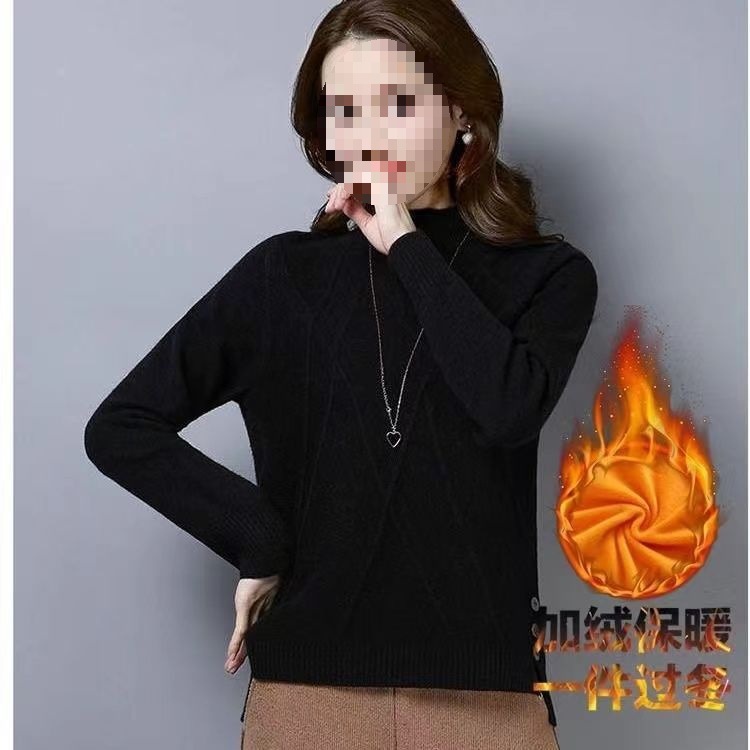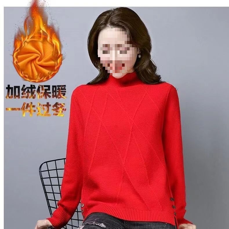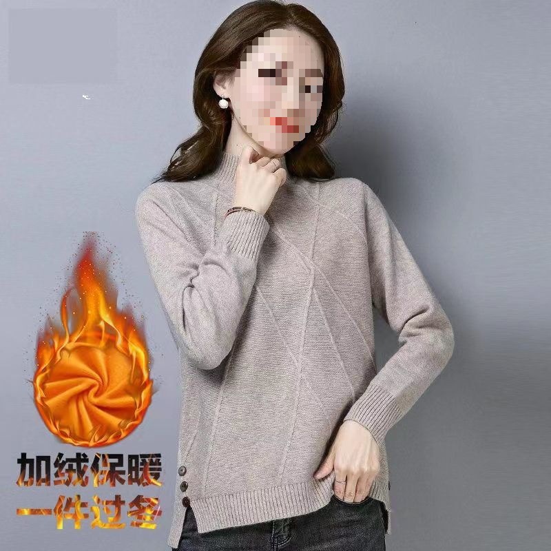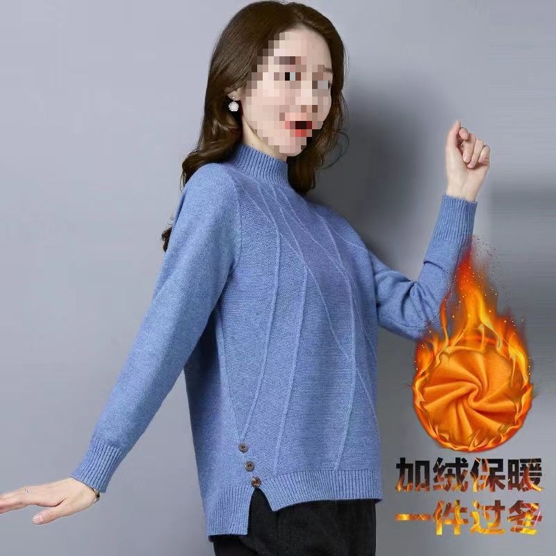기모/아니 기모 스웨터 여성 풀오버 두꺼운 짧은 하프 터틀넥 느슨한 플러스 사이즈 한국 스타일 니트 베이스 셔츠 트렌디