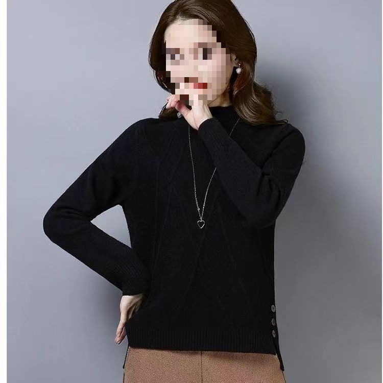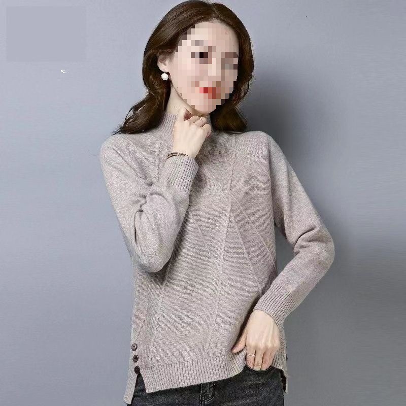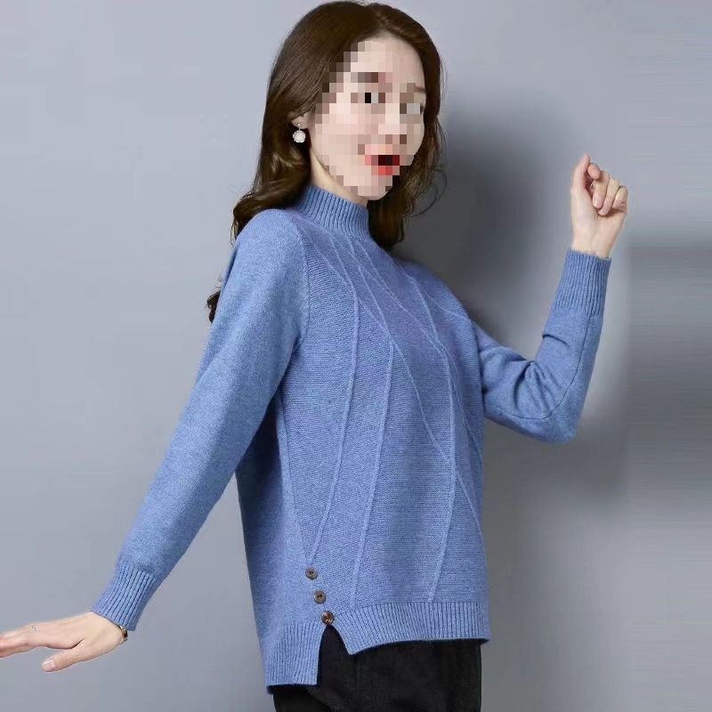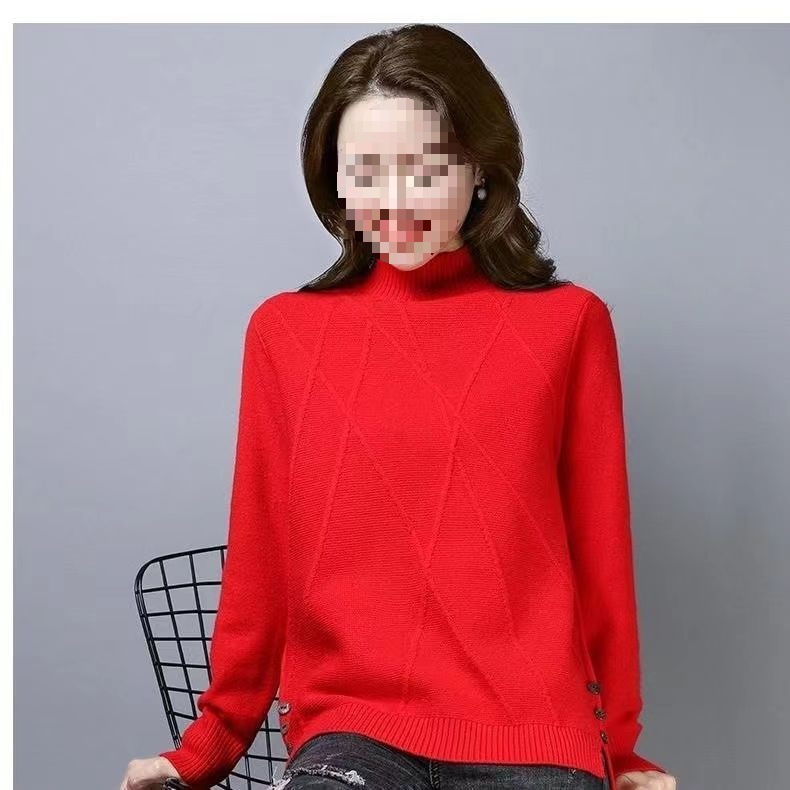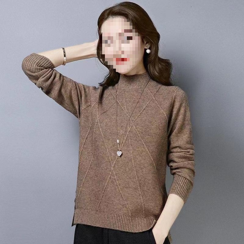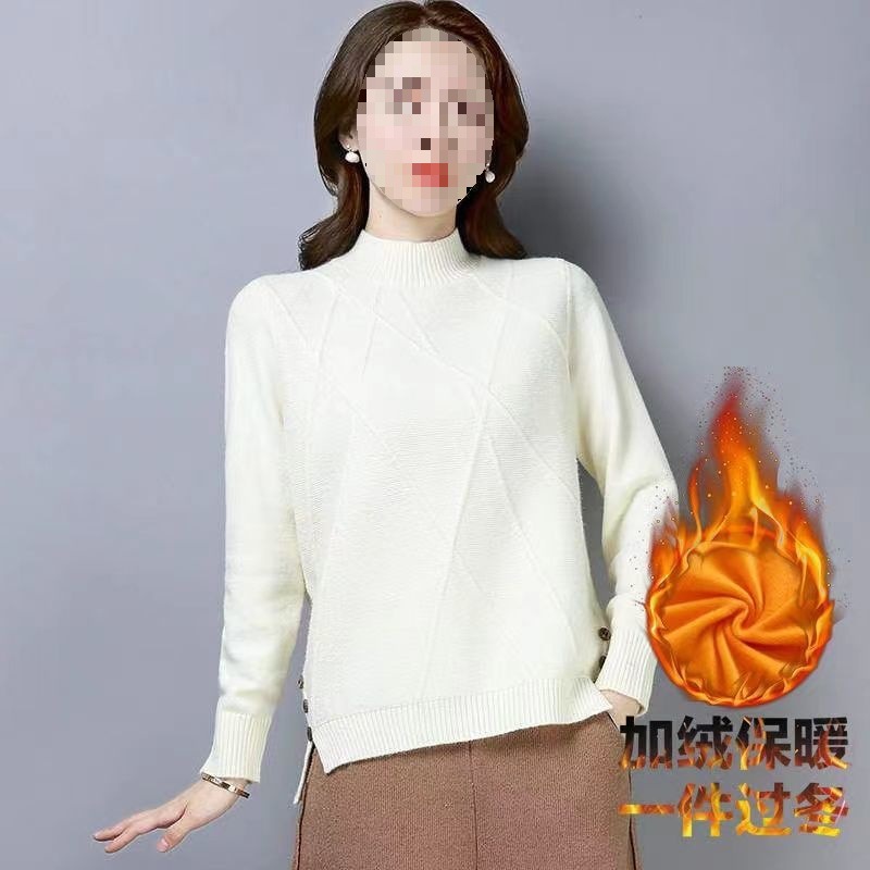 기모/아니 기모 스웨터 여성 풀오버 두꺼운 짧은 하프 터틀넥 느슨한 플러스 사이즈 한국 스타일 니트 베이스 셔츠 트렌디