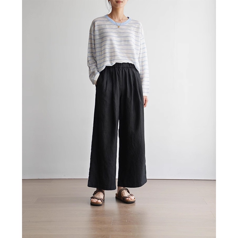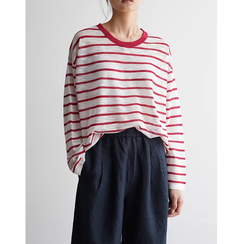 여름 썬 스크린 쿨 에어 센스 린넨 여성용 긴팔 크루 넥 스웨터 봄과 여름스토어 가기