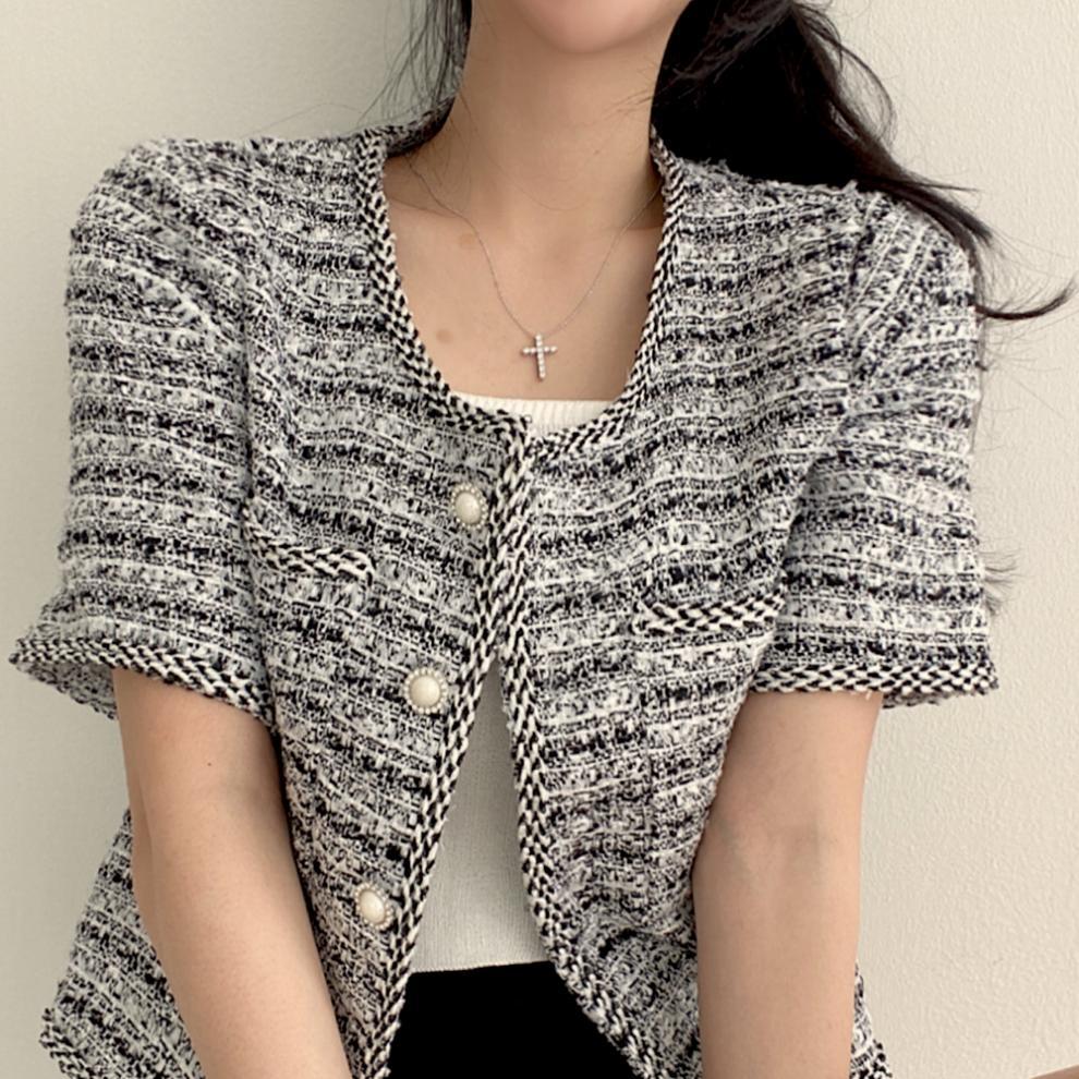 리얼 샷 프랑스 세련된 디자인 센스 틈새 향기로운 스타일 코트 카디건 여성 여름 새 스타일 사교계 서양 스타일 쇼트 탑스토어 가기