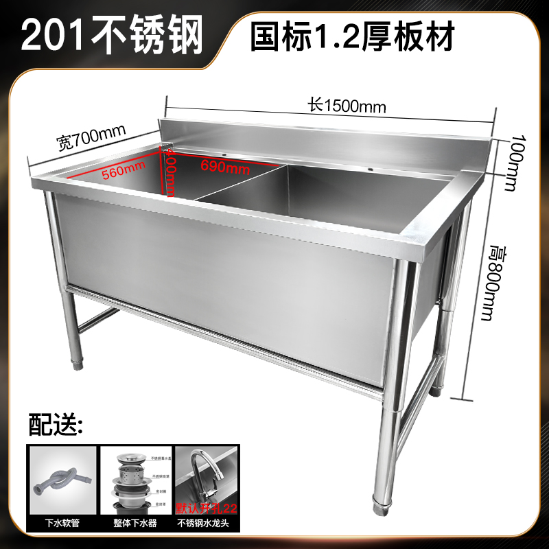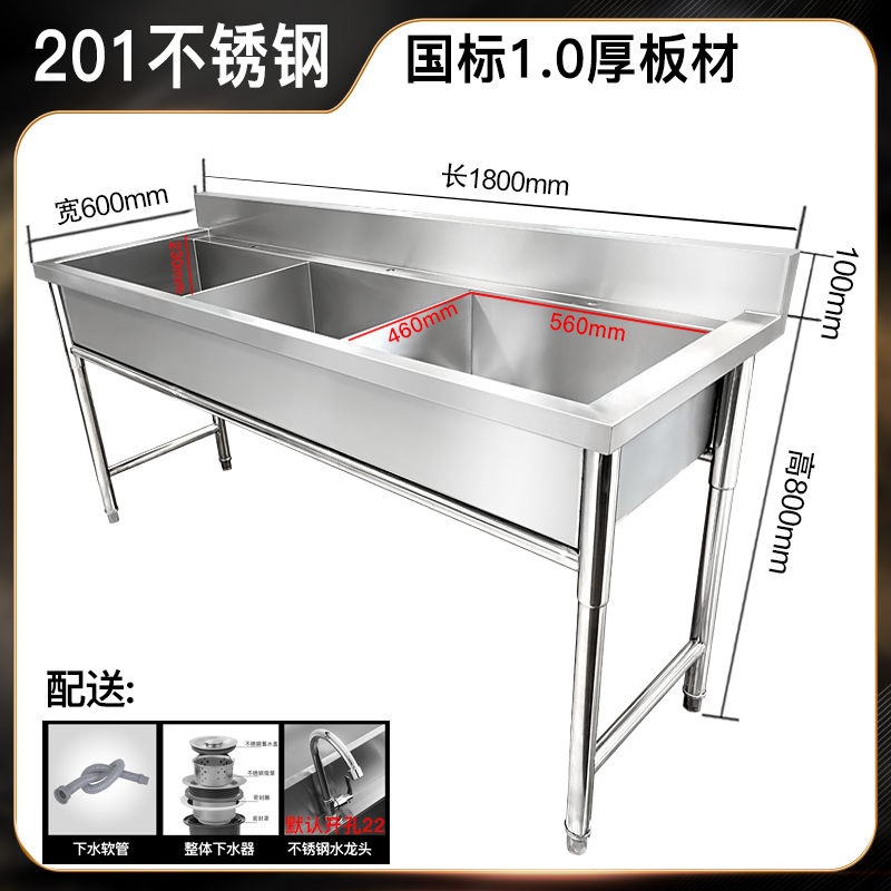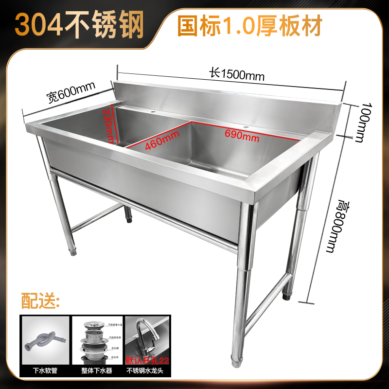 스테인레스 스틸 싱크 더블 싱크 3 싱크 샌싱 싱크 상업용 주방 싱크 테이블 두꺼운 수영장 야채 싱크스토어 가기