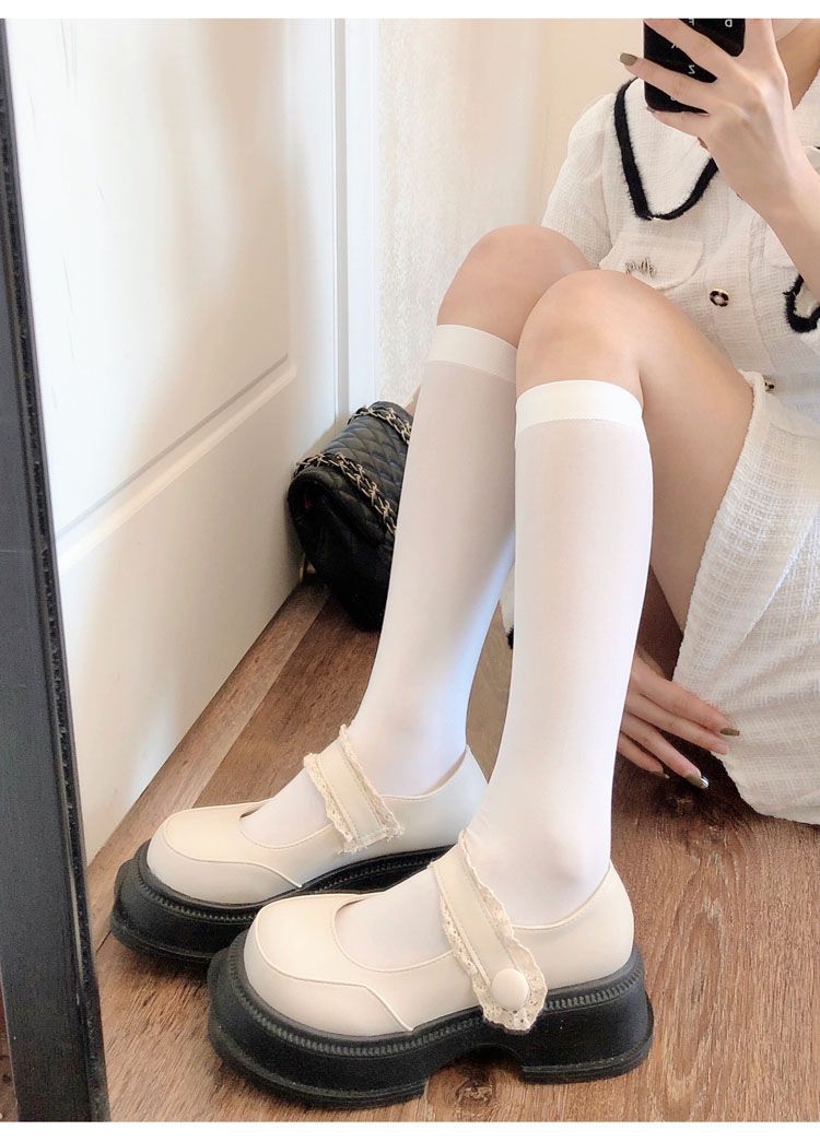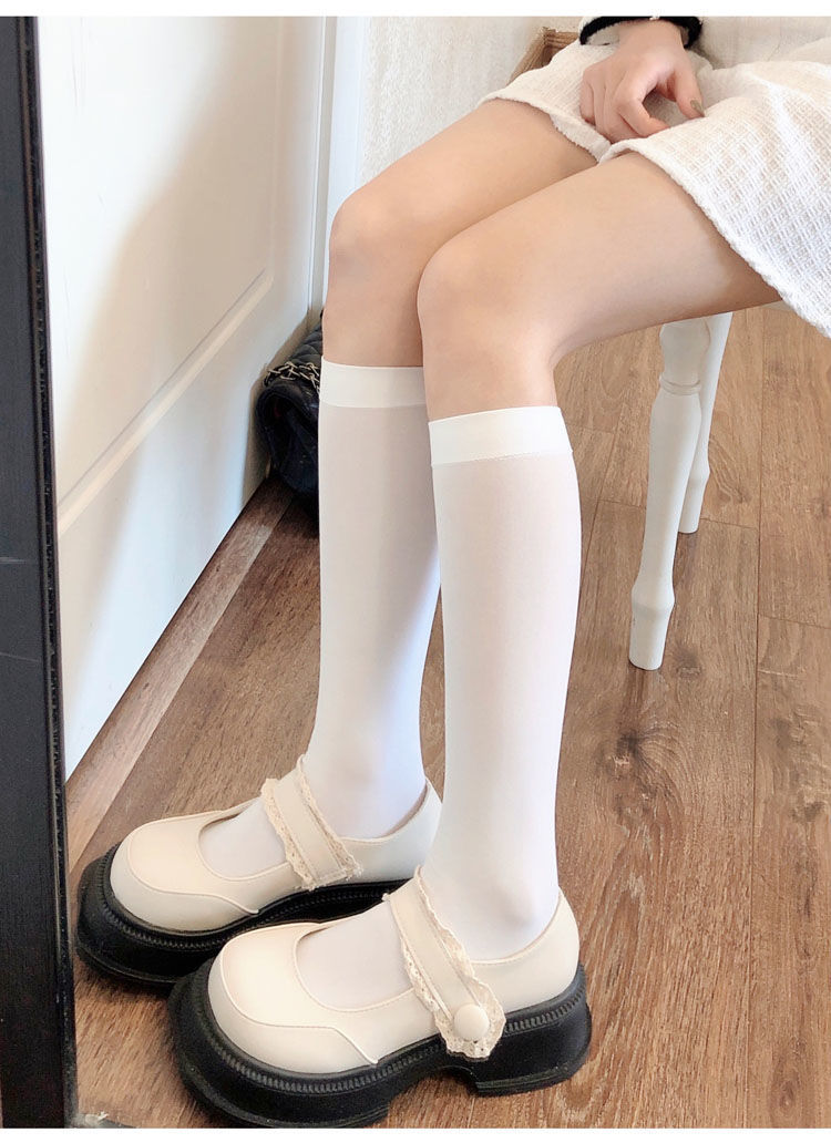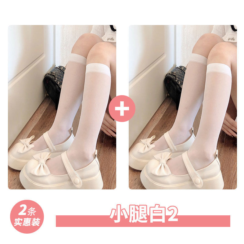 일본 JK 흰색 종아리 양말 여성의 봄과 여름 초박형 고기 검은 중간 튜브 양말 달콤한 로리타 밀크 화이트 스타킹스토어 가기