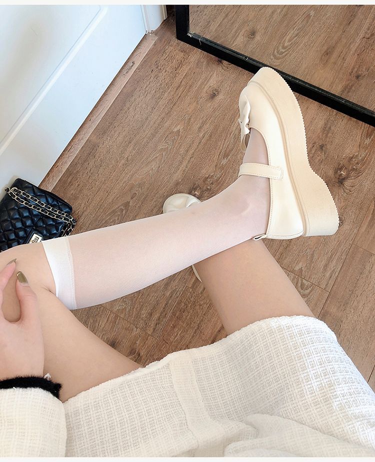 일본 JK 흰색 종아리 양말 여성의 봄과 여름 초박형 고기 검은 중간 튜브 양말 달콤한 로리타 밀크 화이트 스타킹