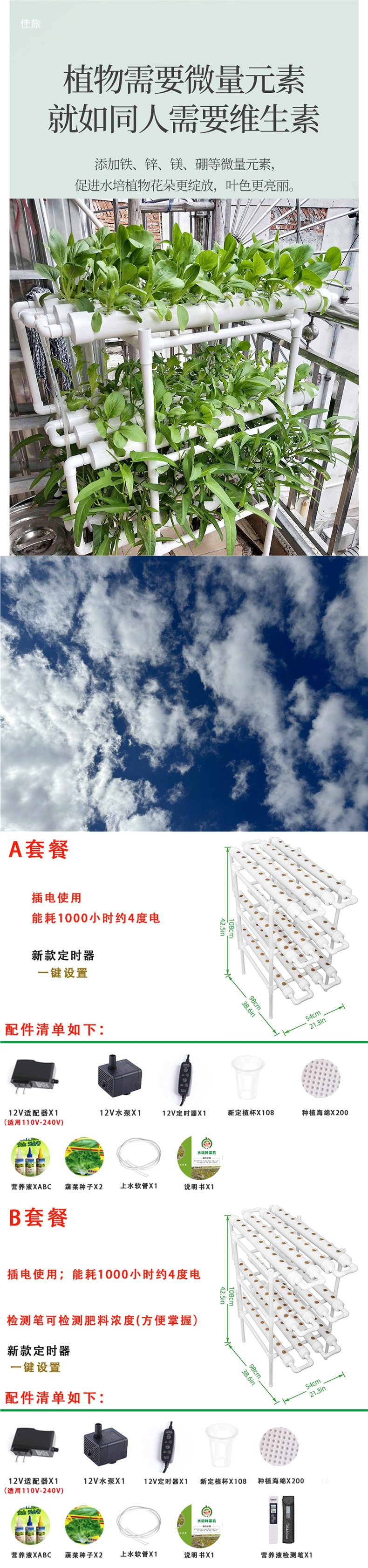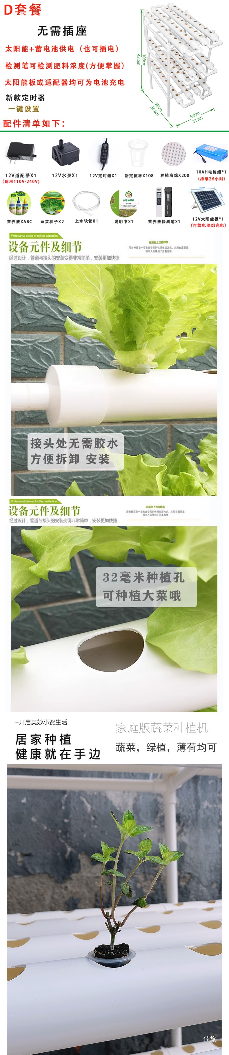발코니 파이프 형 수경 야채 심기 기계 홈 무염 재배 야채 장비 자동 순환 다층 심기 선반