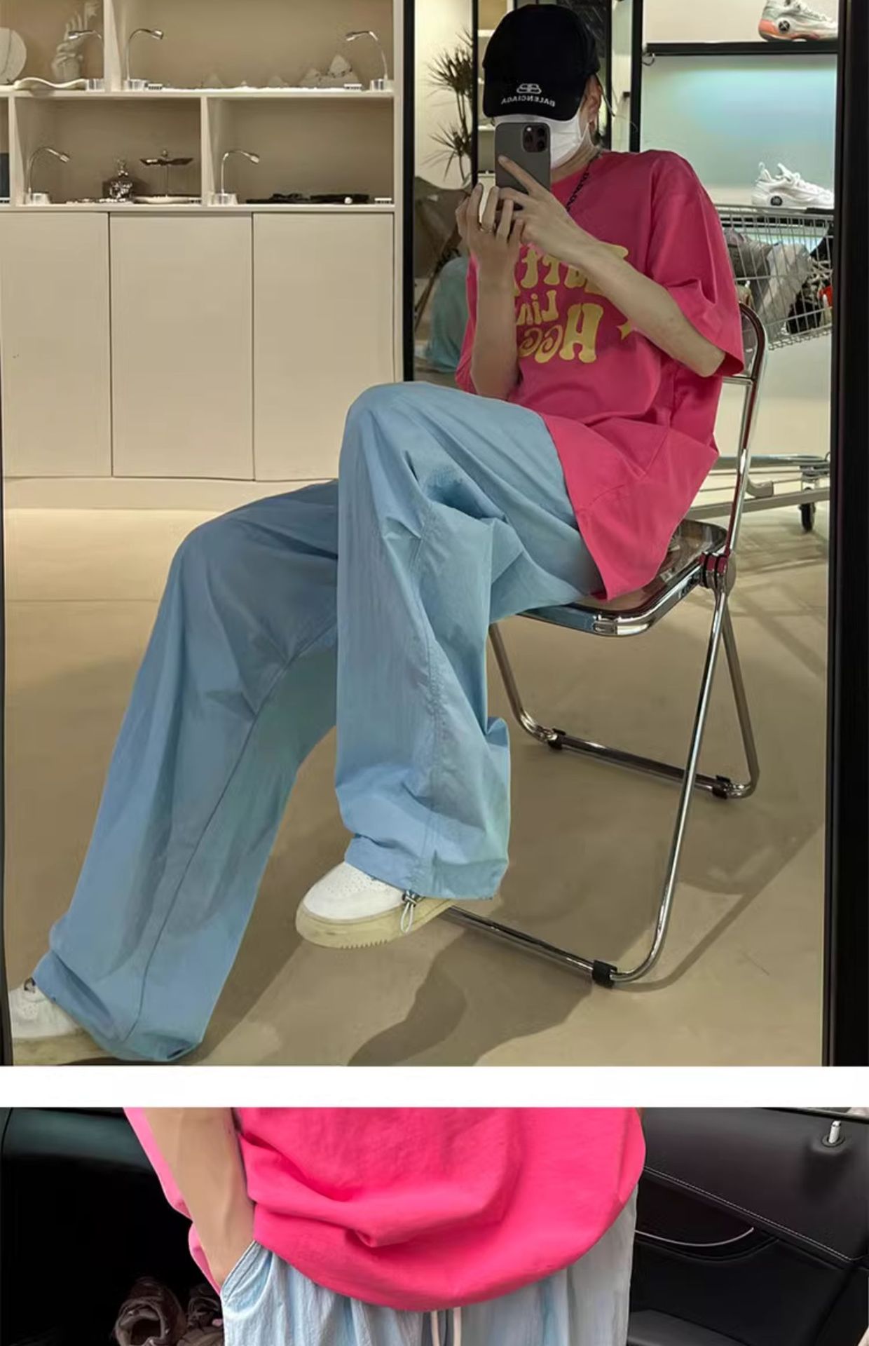 노란색 빠른 건조 스포츠 바지 여성 여름 얇은 도파민 선 스크린 등산 와이드 레그 작업복 캐주얼 기능성 낙하산 바지스토어 가기