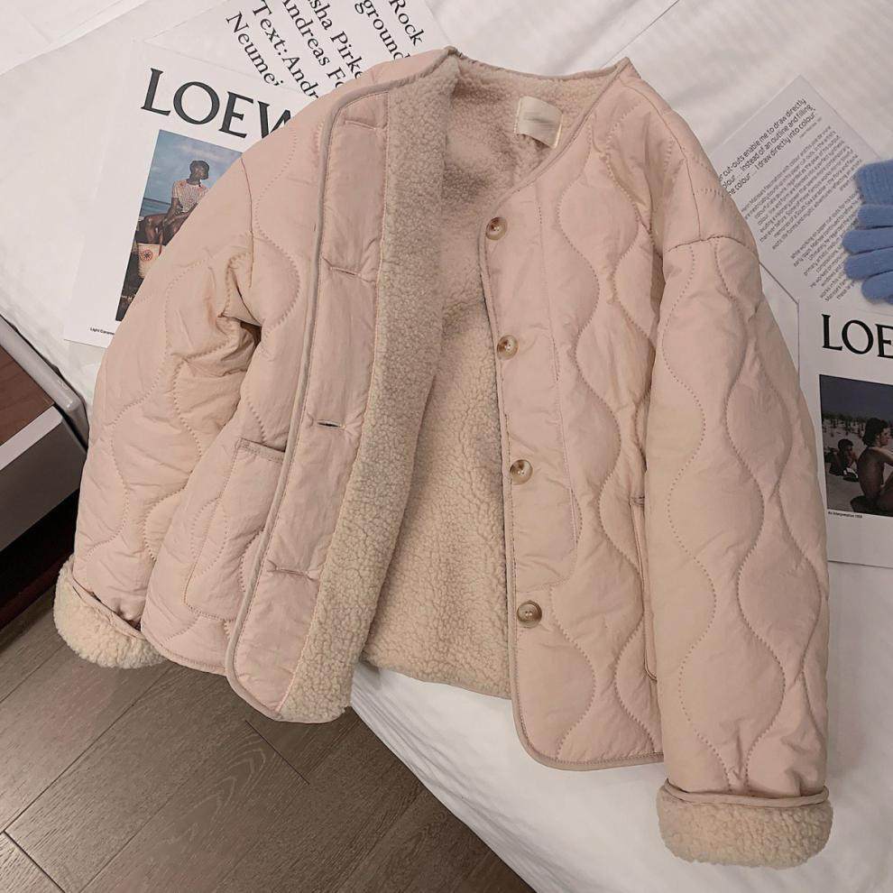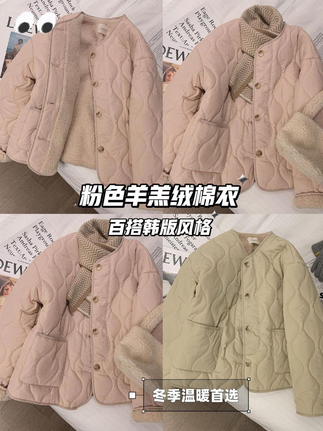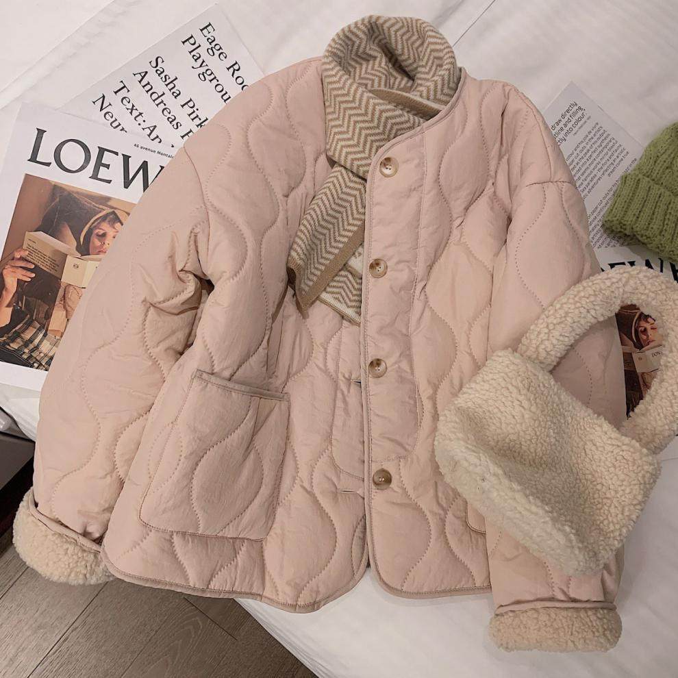 [칭찬] 핑크 통통녀 양고기 벨벳 코튼 코트 겨울 새 한국식 따뜻한 두꺼운 코트 코튼 코트스토어 가기