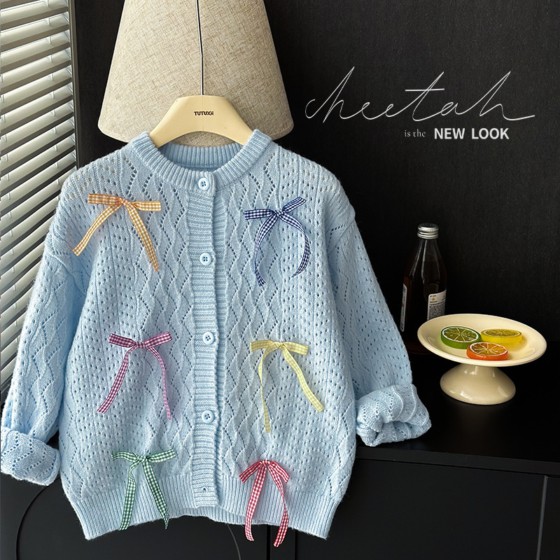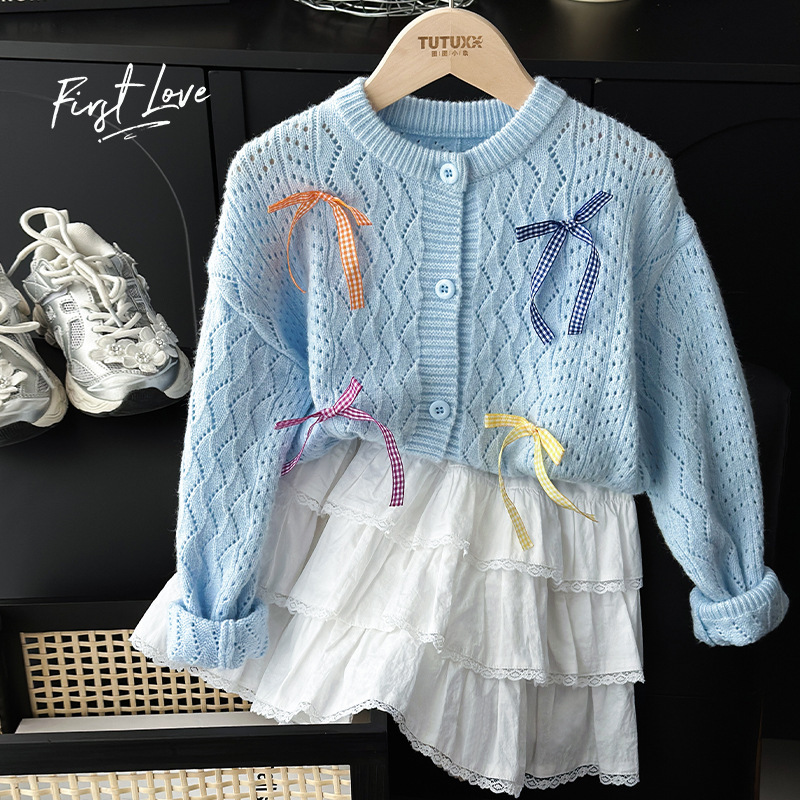 TikTok 폭발 소녀 니트 카디건 2025 봄 새로운 인터넷 인기있는 외국 스타일 어린이 활 스웨터 코트 트렌디스토어 가기
