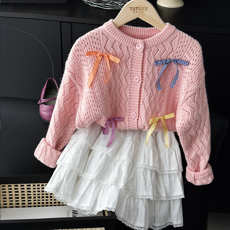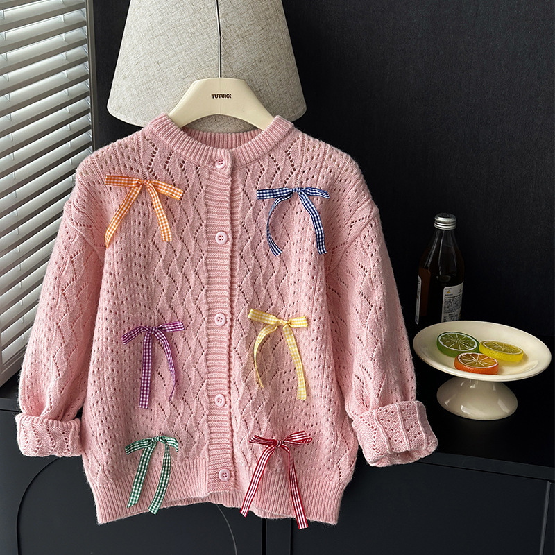 TikTok 폭발 소녀 니트 카디건 2025 봄 새로운 인터넷 인기있는 외국 스타일 어린이 활 스웨터 코트 트렌디