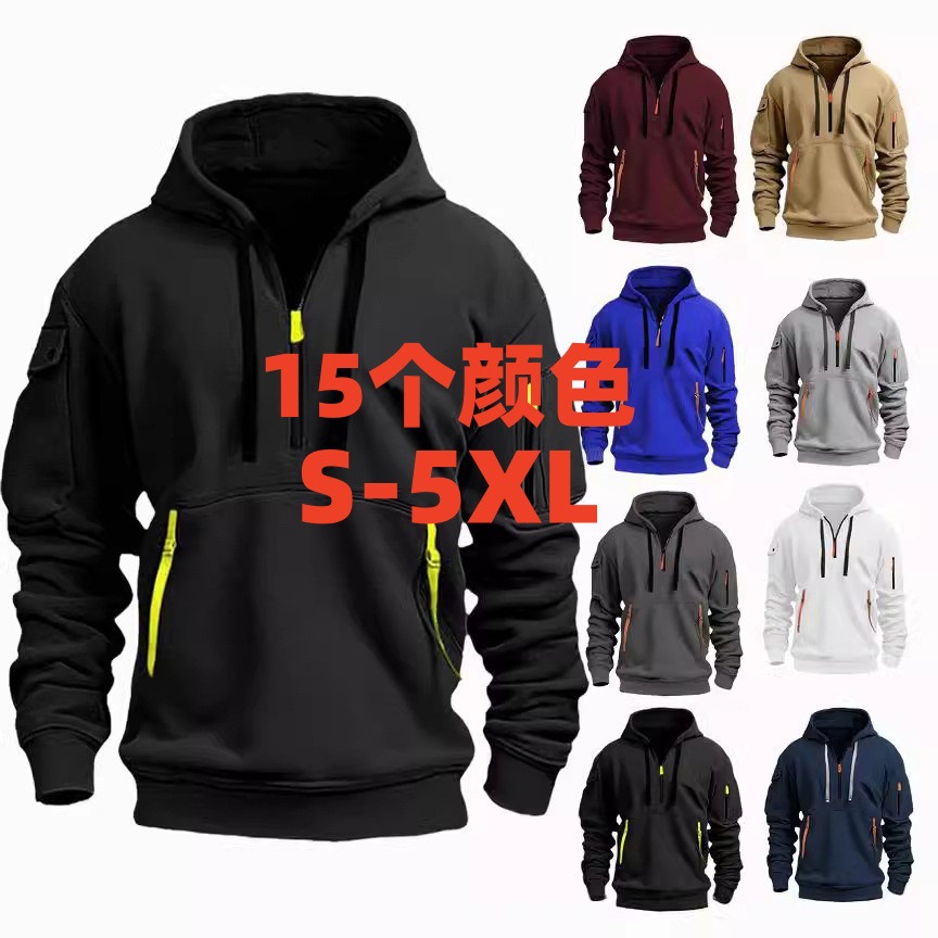국경 간 봄과 가을 남성 스웨트 셔츠 후드 지퍼 멀티 포켓 자수 배지 풀오버 스포츠 캐주얼 스웨트 셔츠