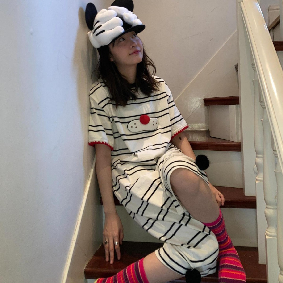 만화 멋진 고양이 줄무늬 나이트 드레스 여름 여성의 한 몸 반팔 면화 잠옷 느슨한 플러스 사이즈 홈 웨어스토어 가기