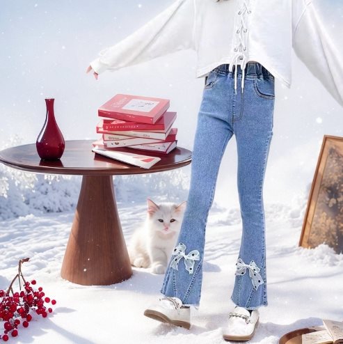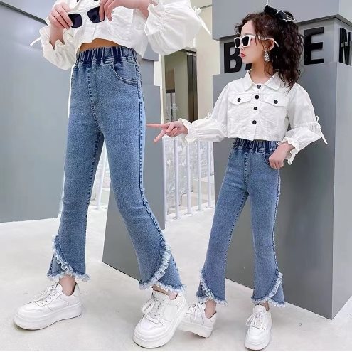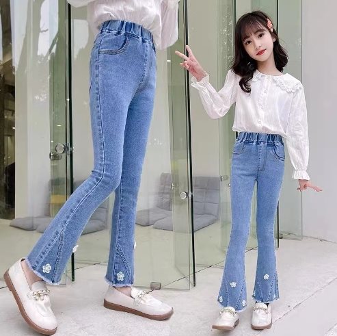 봄과 가을 소녀 바지 스트레치 어린이 청바지 대형 어린이 뿔 바지 2025 새로운 패션 아동복 학생 바지스토어 가기