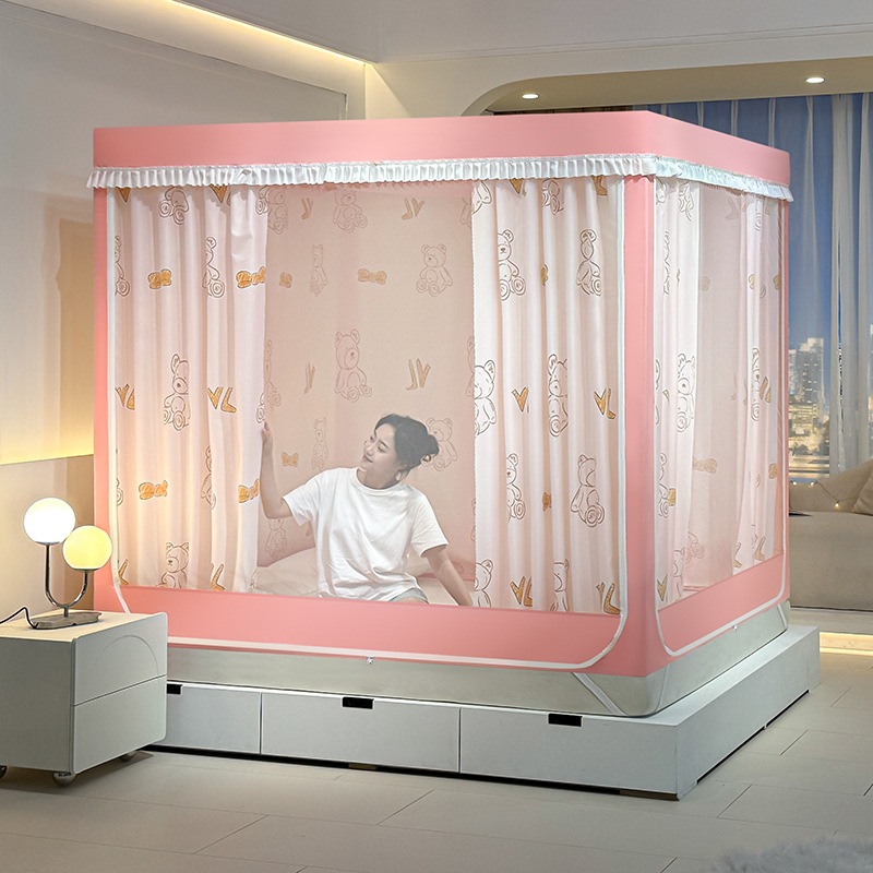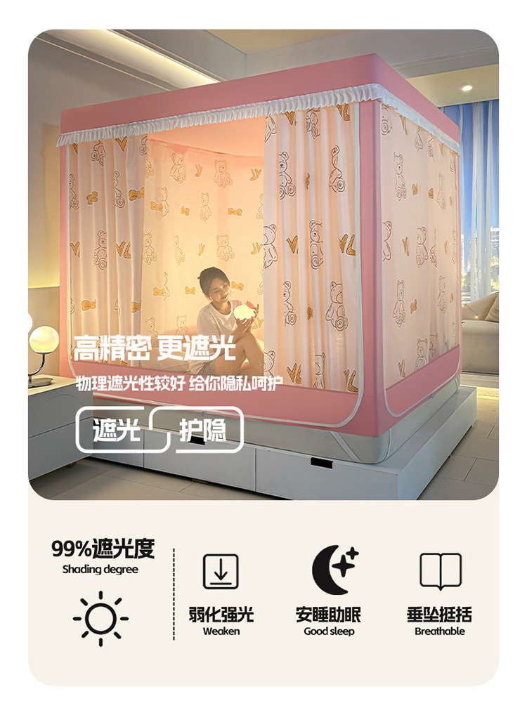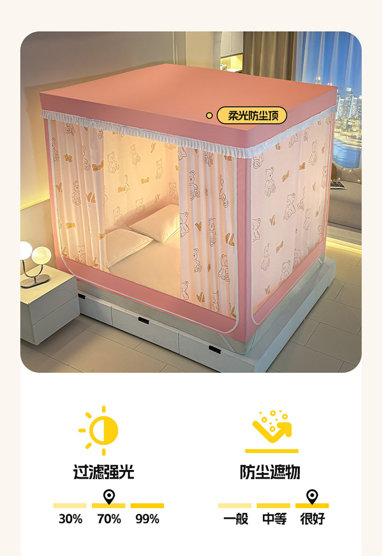 새로운 완전 폐쇄 모기장 지퍼 침대 가구 유르트 통합 암호화 음영 침대 커튼 먼지 방지 침대 맨틀스토어 가기
