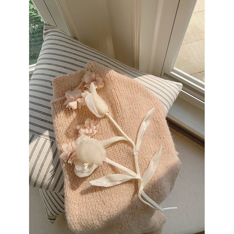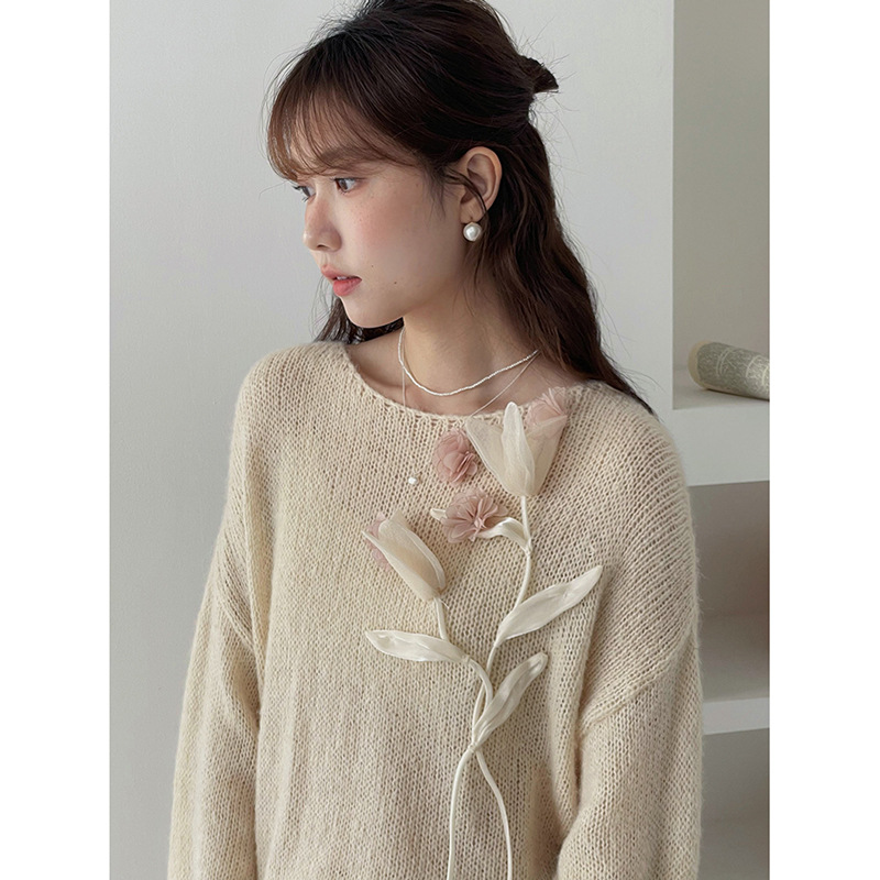 【모닝 플라워 언더스트링 핸드메이드 입체 꽃 니트】게밍 한국 스타일 니트 여성 가을 신상 상의 N793B스토어 가기