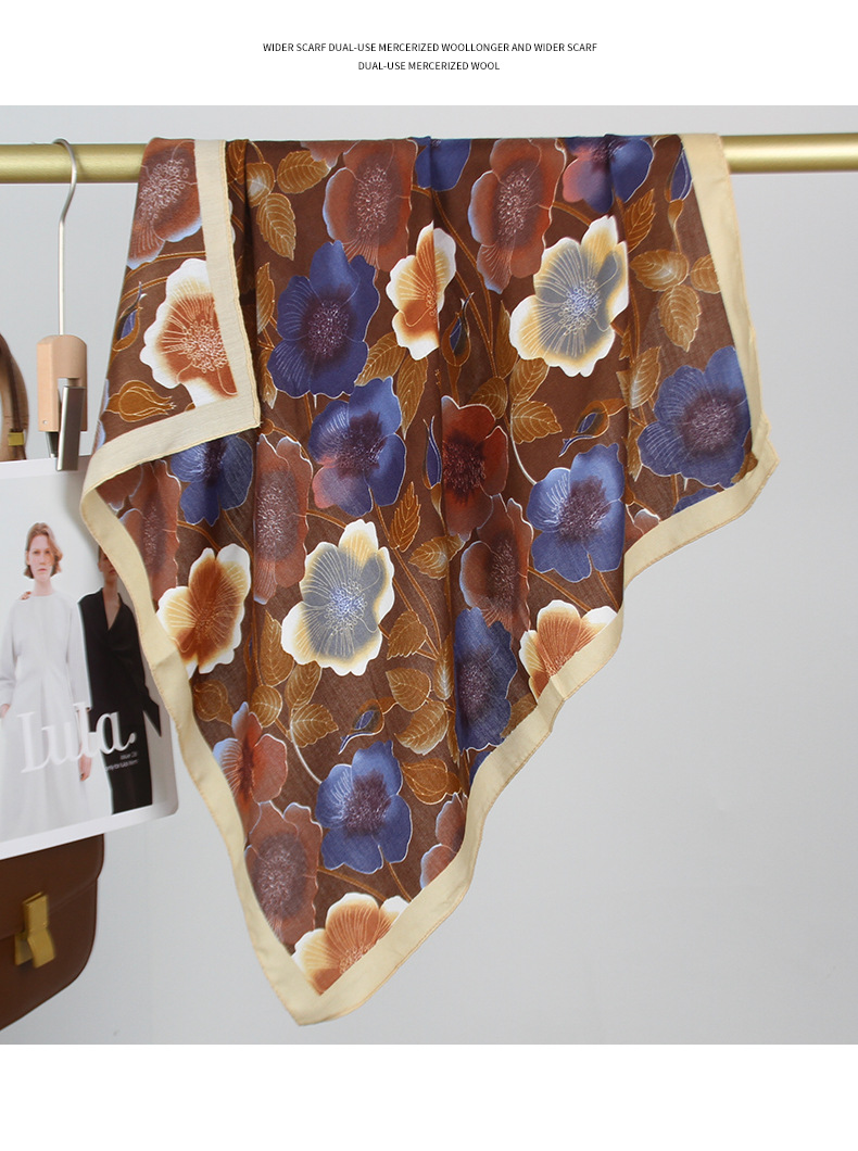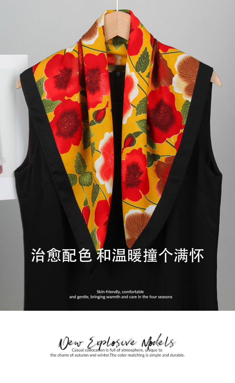 2025 새로운 꽃 벨벳 인쇄 광장 스카프 우아한 장식 목 보호 목도리 인쇄 선 스크린 스카프