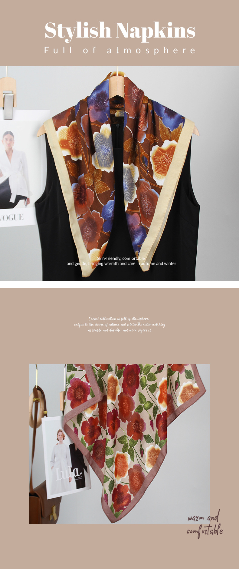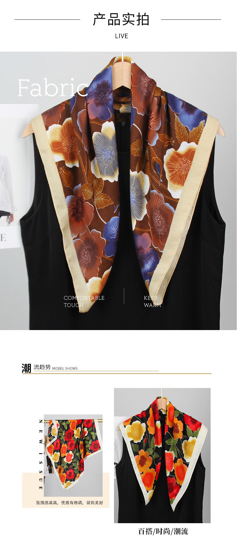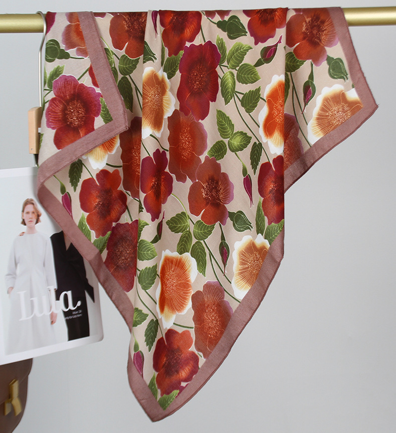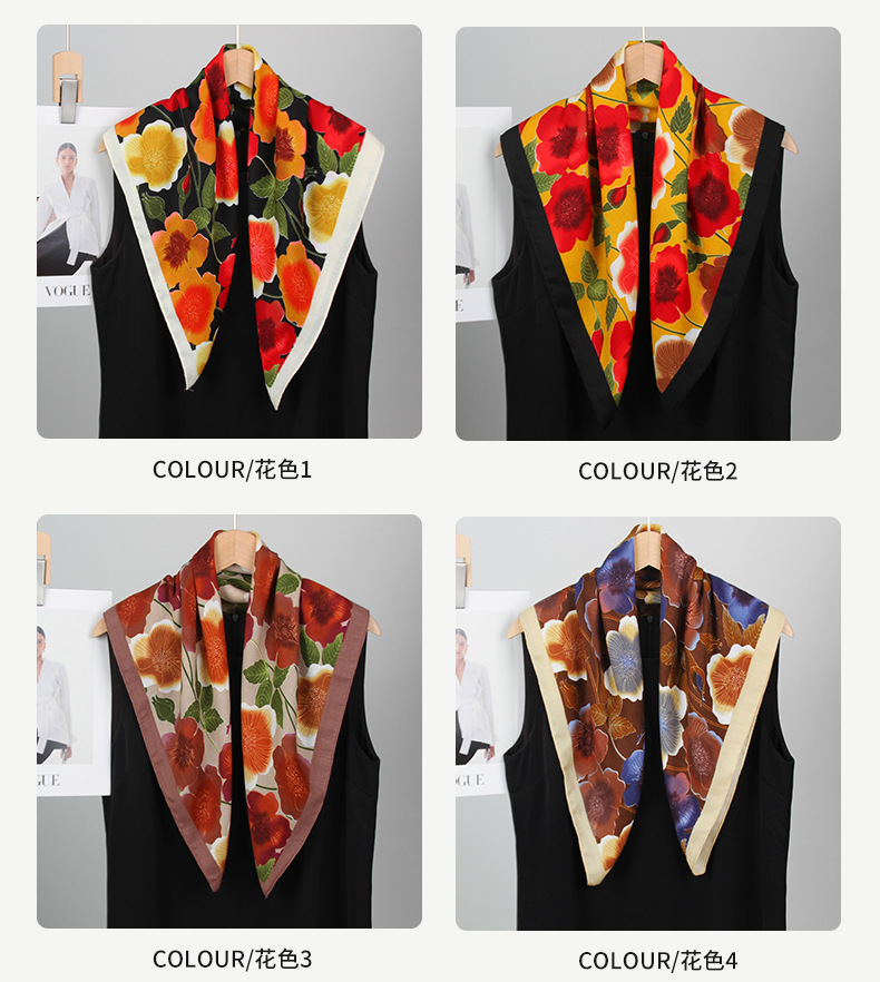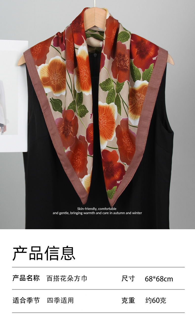 2025 새로운 꽃 벨벳 인쇄 광장 스카프 우아한 장식 목 보호 목도리 인쇄 선 스크린 스카프스토어 가기