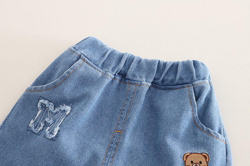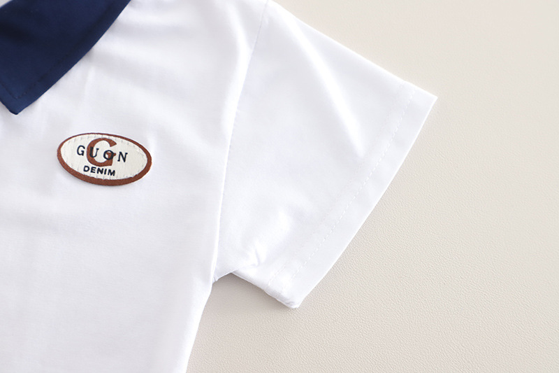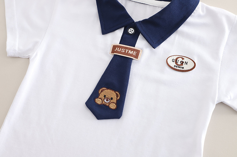 2025 새로운 여름 어린이 반팔 세트 남자 넥타이 베어 반팔 만화 크루 넥 탑 반바지 투피스 세트스토어 가기