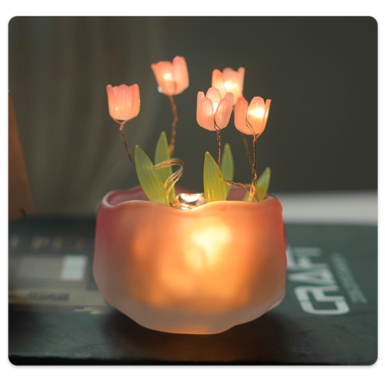 국경 간 튤립 꽃 밤 빛 사무실 바탕 화면 장식 여자 친구 분위기 선물을위한 귀여운 호박 컵