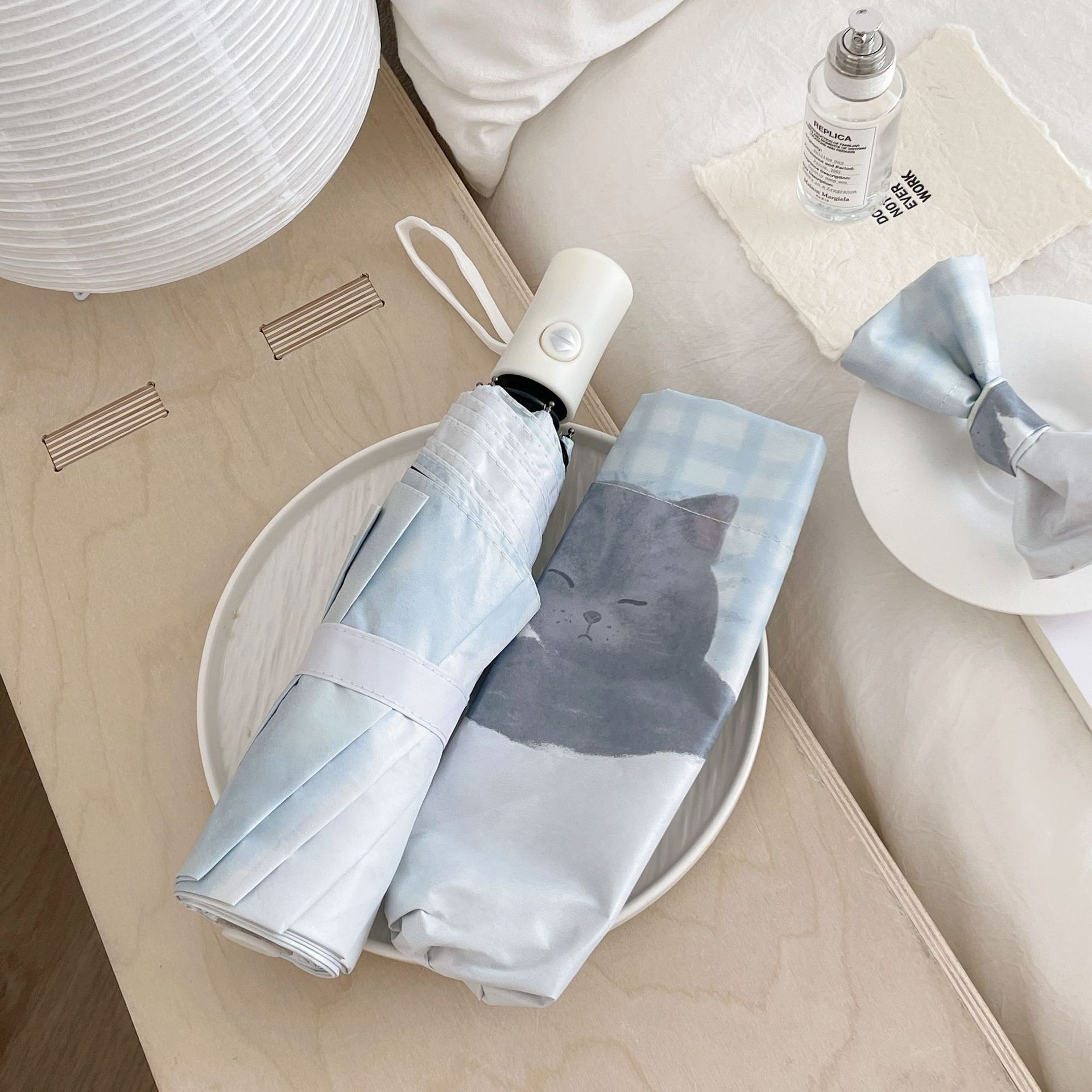 자동 우산 태양 보호 이중 목적 Ins 모리 간단한 접히는 학생 햇빛 비 태양 우산 UV 보호
